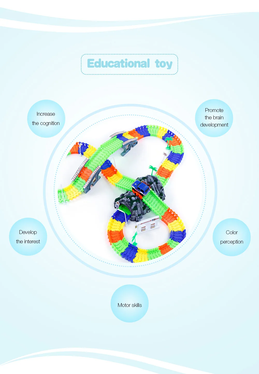 2017 New Racing Track Set 28/96/144/192PCS Race Track with Car Assembly Flexible Glowing Tracks Vehicle Toys Children Kids Gifts Main Features: