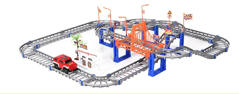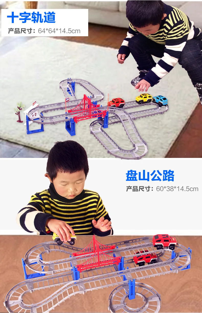 Electric Racing rail car kids train track model toy baby Railway Track Racing Road Transportation Building Slot Sets 2 Colors
