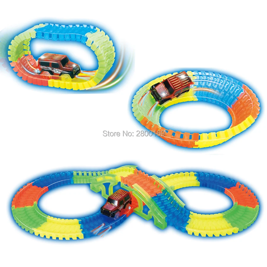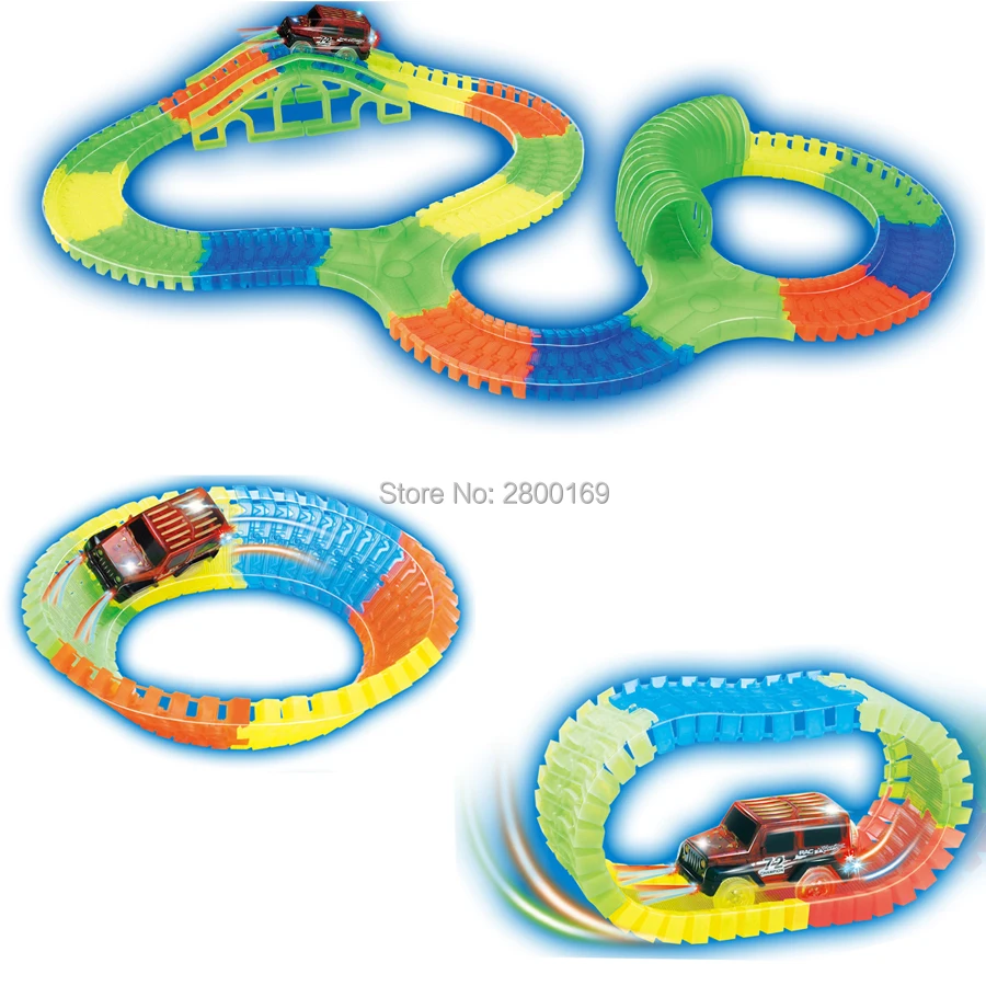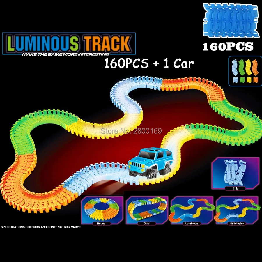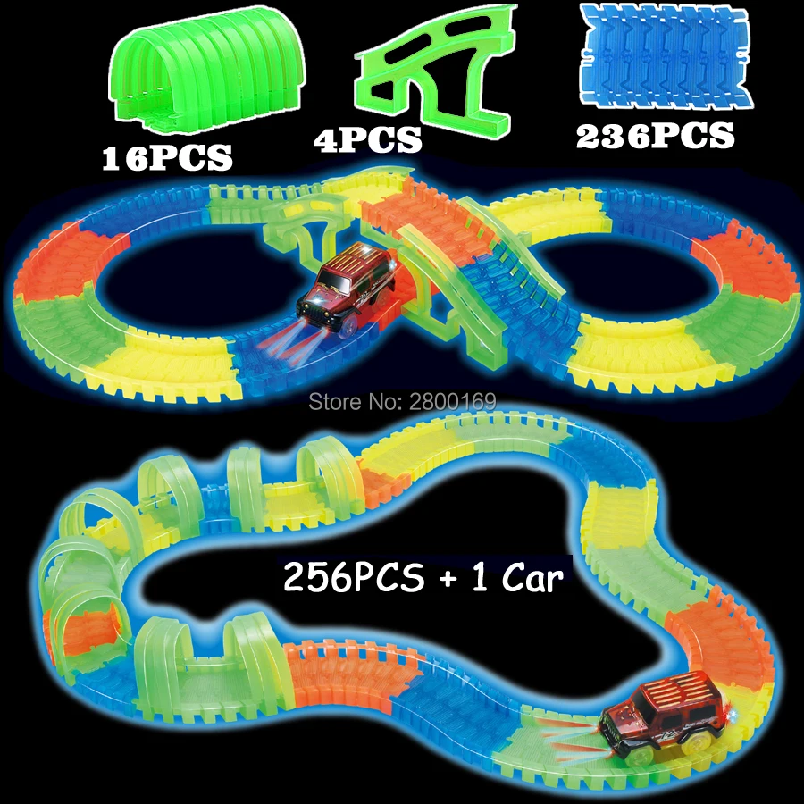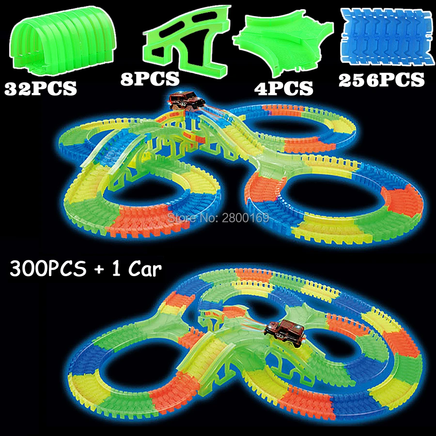Glow race track Bend Flex Glow in the Dark Assembly Toy 112/160/256/300PCS Slot Race Track + 1PC LED Car Puzzle Educational Toys
