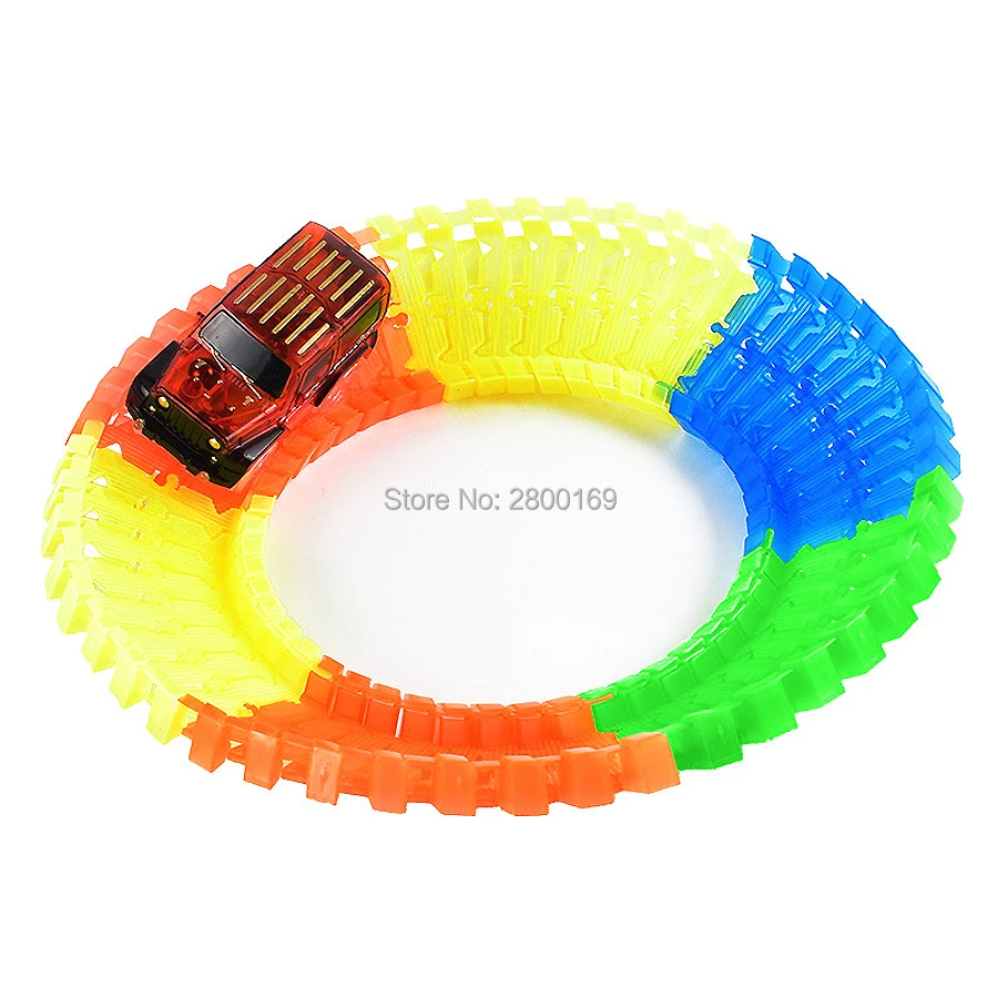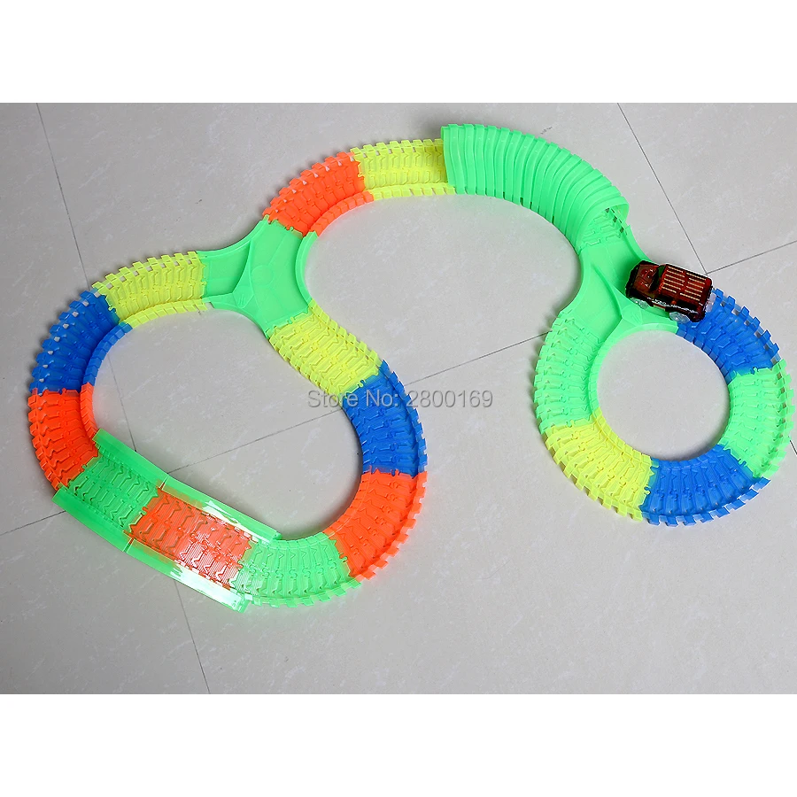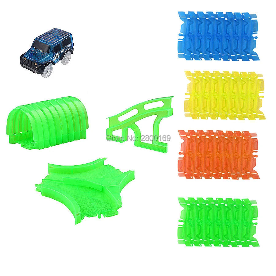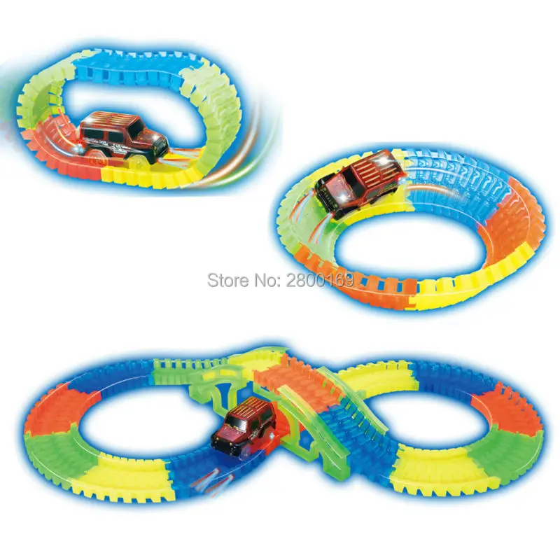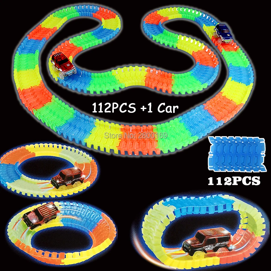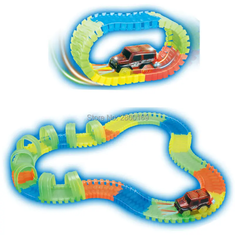 Glow race track Bend Flex Glow in the Dark Assembly Toy 112/160/256/300PCS Slot Race Track + 1PC LED Car Puzzle Educational Toys