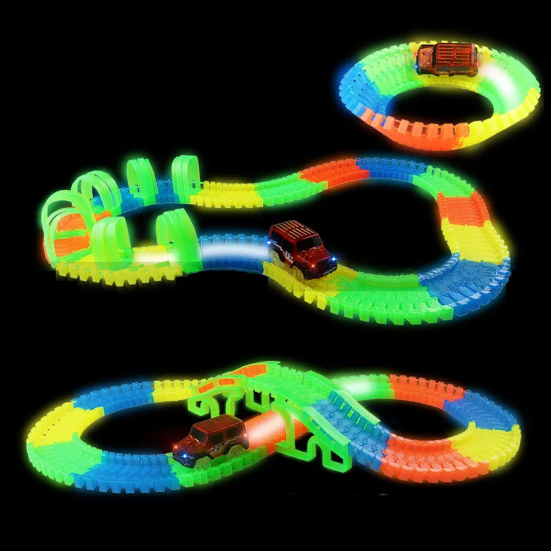 New Glowing car racing Track Glow in dark toys Crossing/Tunnel/Arch Bridge Car set Bend Flex Cars toy for children brinquedos
