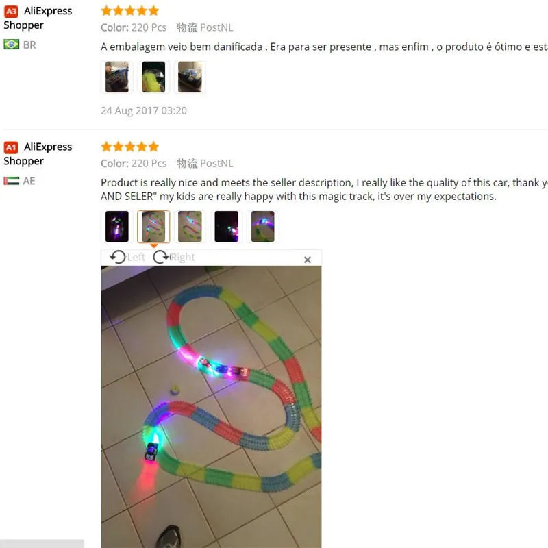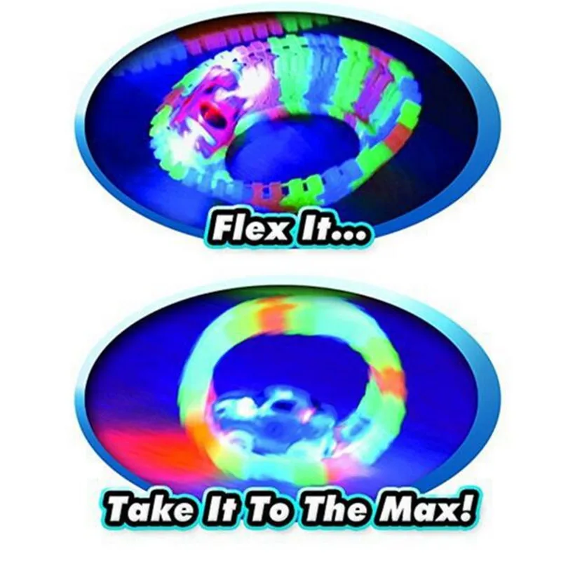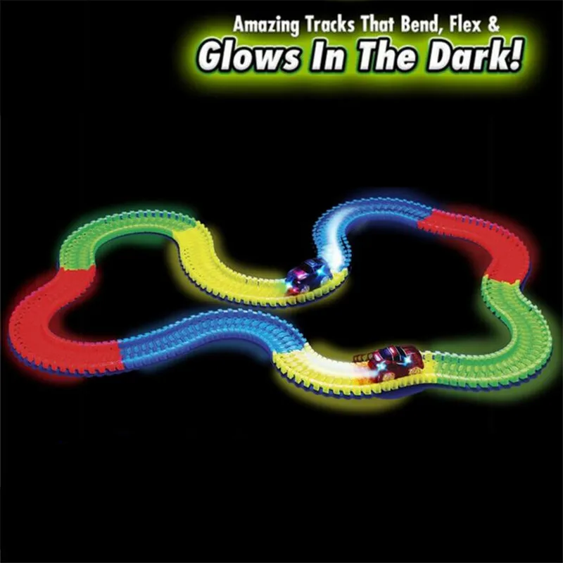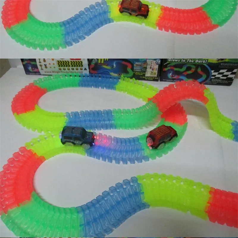 Includes 360 track pieces, 2LED light-up car, bridge sticker sheet and instruction guide
