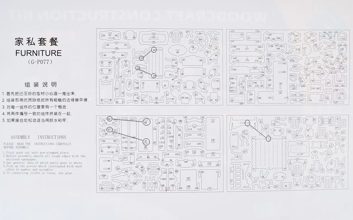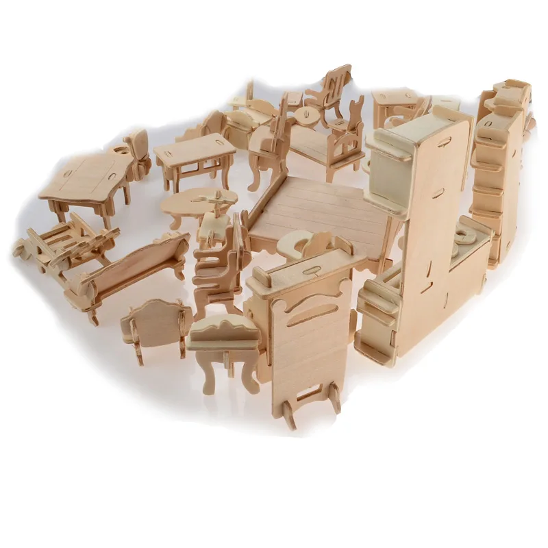 Quantity: Total 34 furnitures /185 interlocking, 3 mm wooden plywood pieces