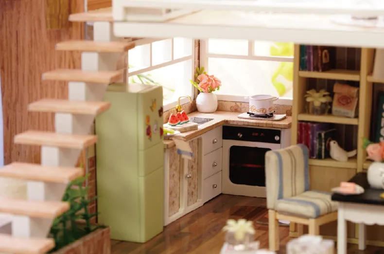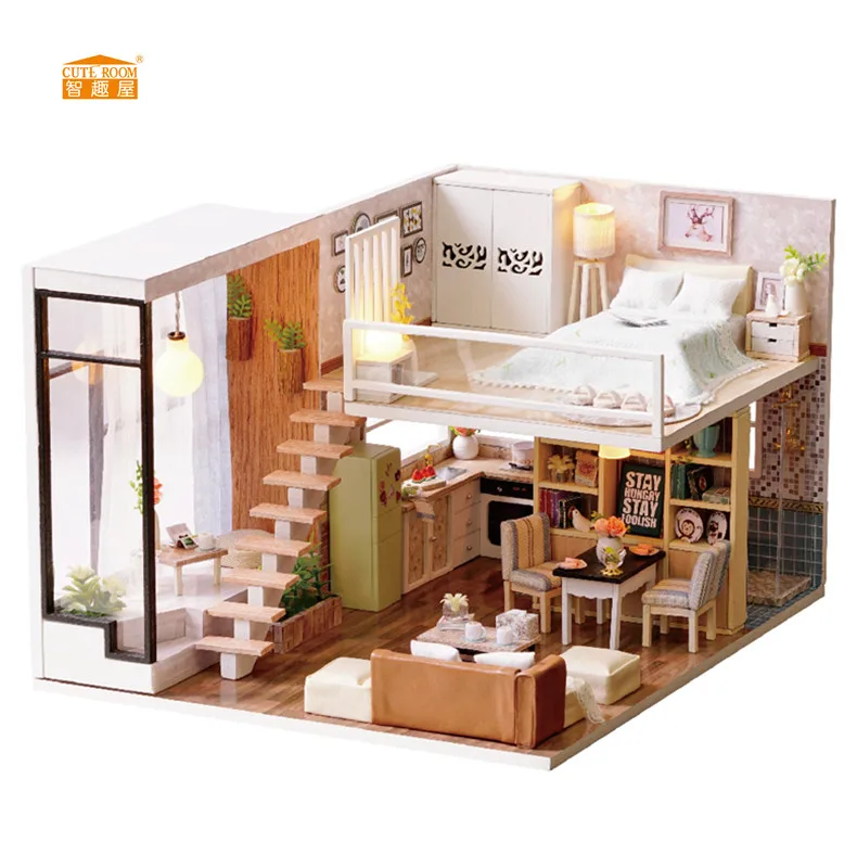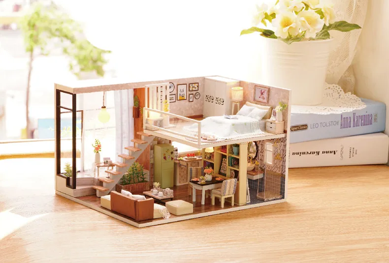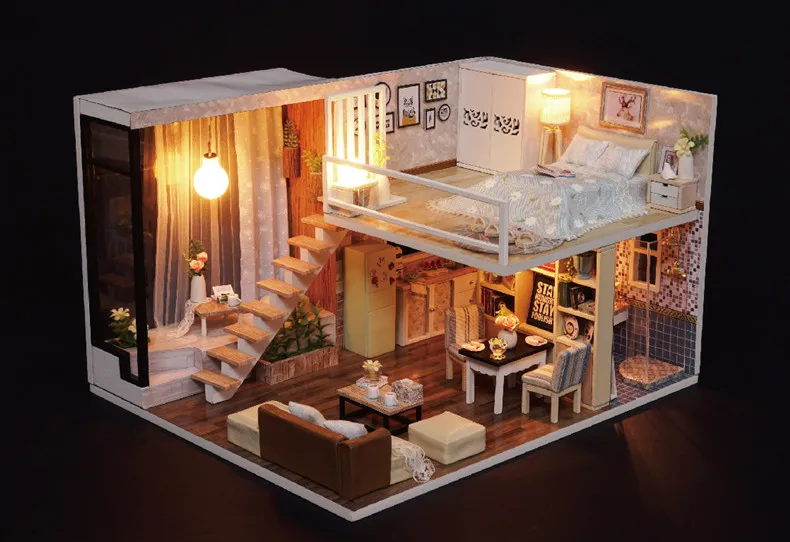 DIY Wooden Doll House With Miniature Furniture