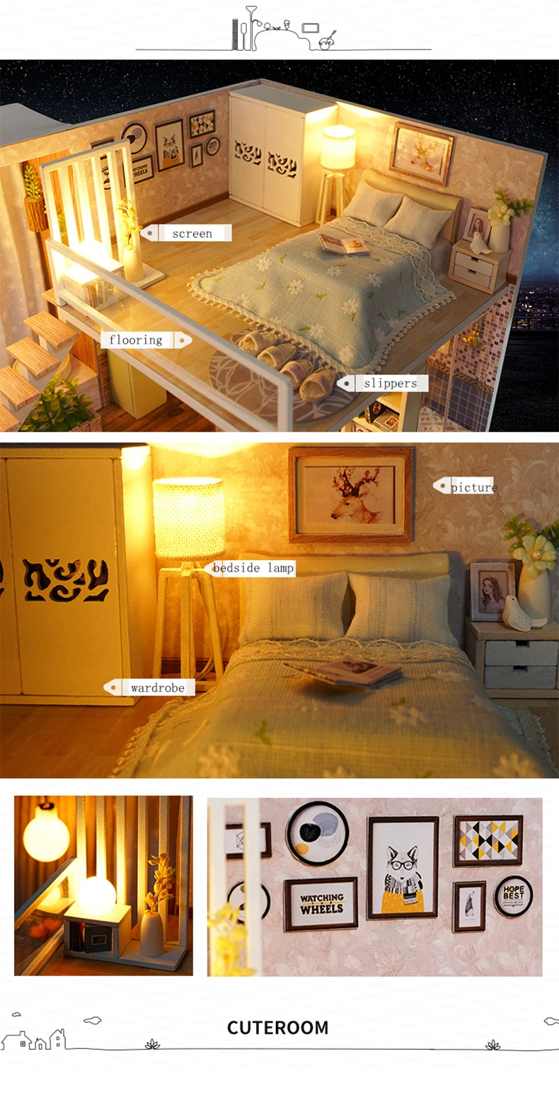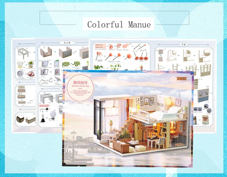 Doll house need to be assembled by parts. Include all furnutures as pictures shown . It is a great parents-child toy and Lover gift.