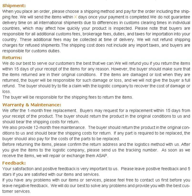 USD 4.99/pair USD 2.99/piece USD 3.24/piece USD 4.99/piece USD 4.99/piece USD 3.99/piece USD 0.99/piece USD 4.99/piece Payment & Shipping & Feedback Policy 100% Satisfaction Guaranteed If you are not satisfied with the items for any reason, please feel free tocontact … Read More