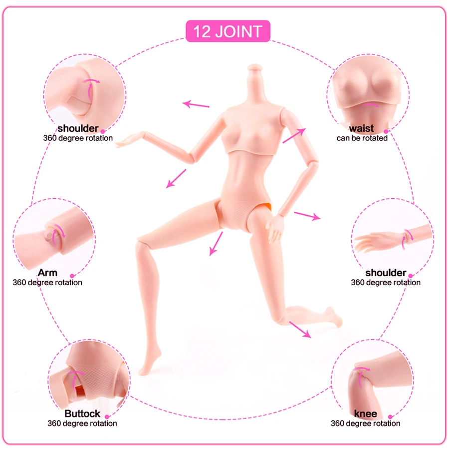 1 PC Nude Doll Body with Head for Barbi Dolls 2 Joint Moving Naked Bodies DIY Toys Accessories Gift for Girl