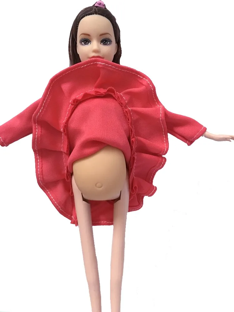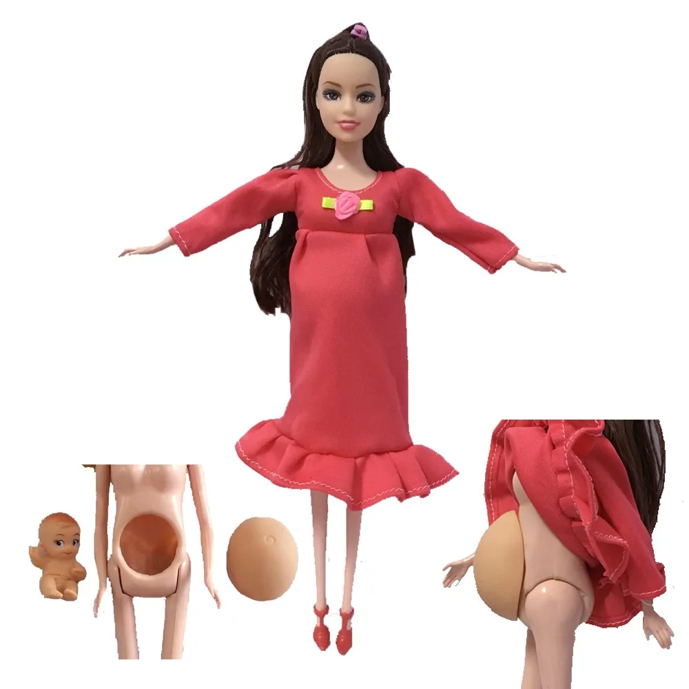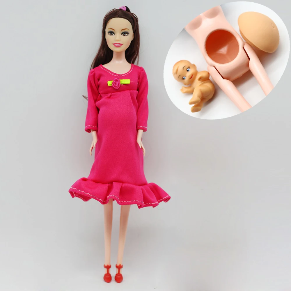 1pcs DIY Brown hair Real pregnant mom doll have a baby in her tummy for barbie dolls child toy gift er028