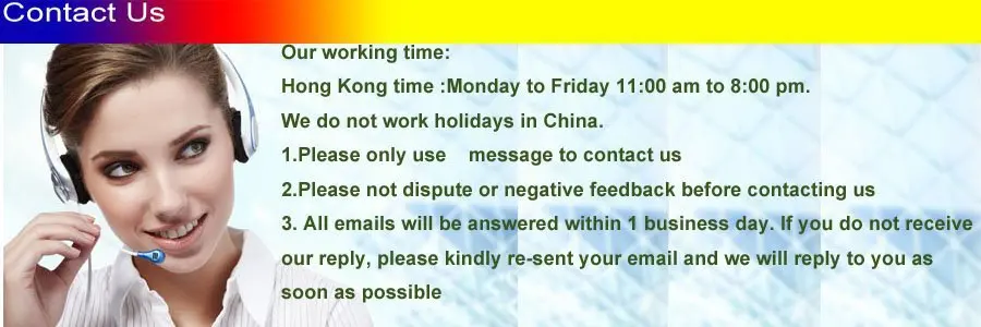 3.If there is any problem that make you are not satisfied,please contact us (by message/ trade manager / email ) before leaving any negative or neutral feedback; we will definitely try our best tou make you satisfied again.