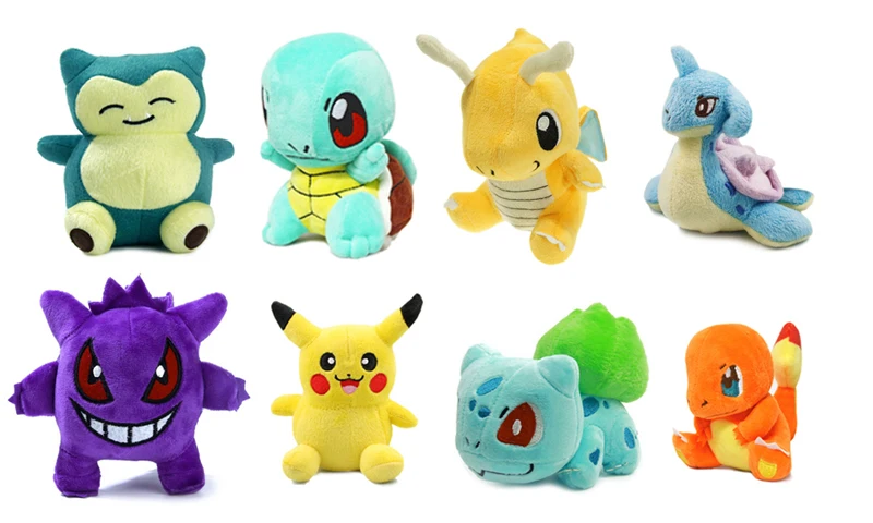 Pikachu: 17cm,Snorlax:16cm,Gengar: 15cm, Dragonite: 16cm,