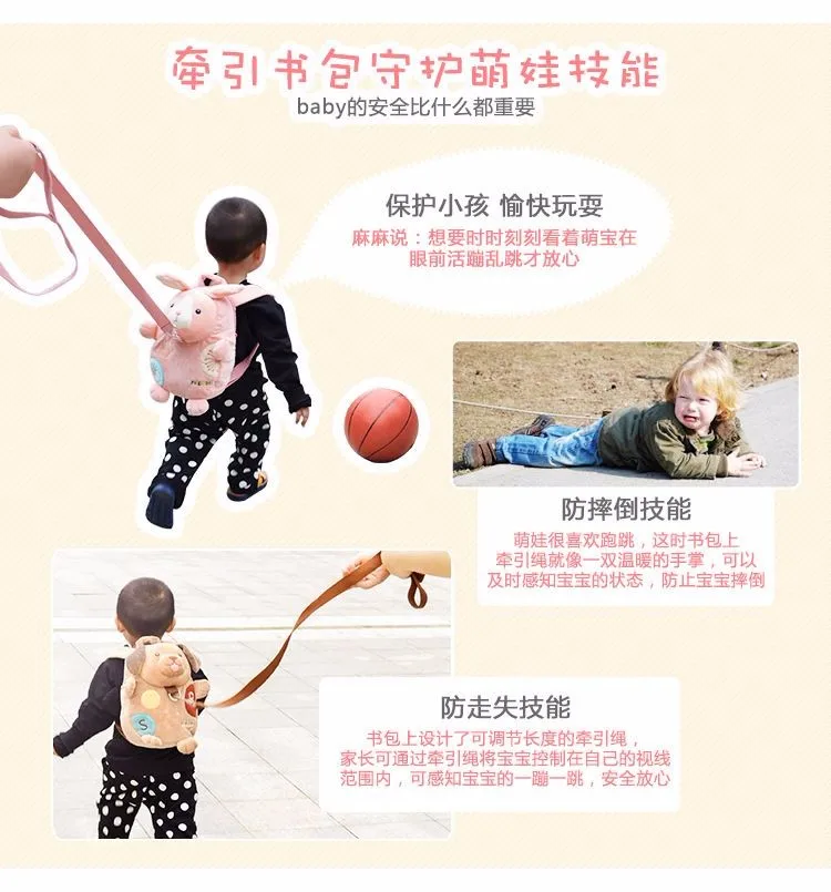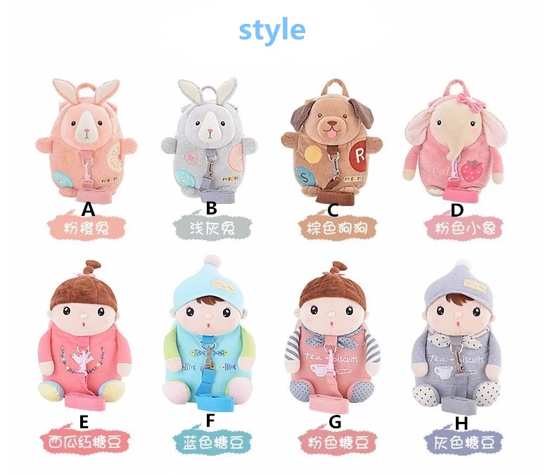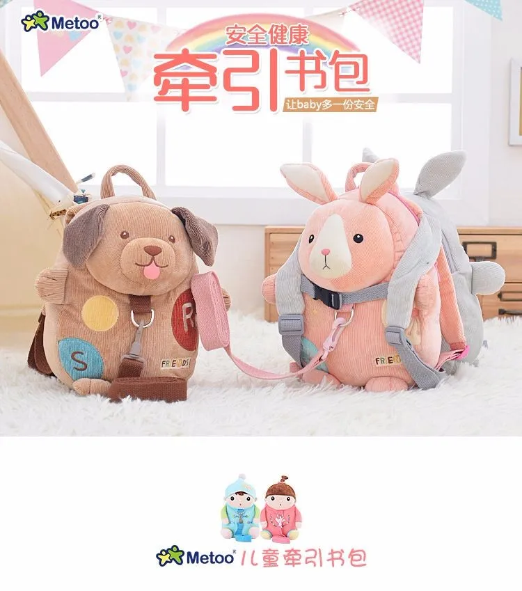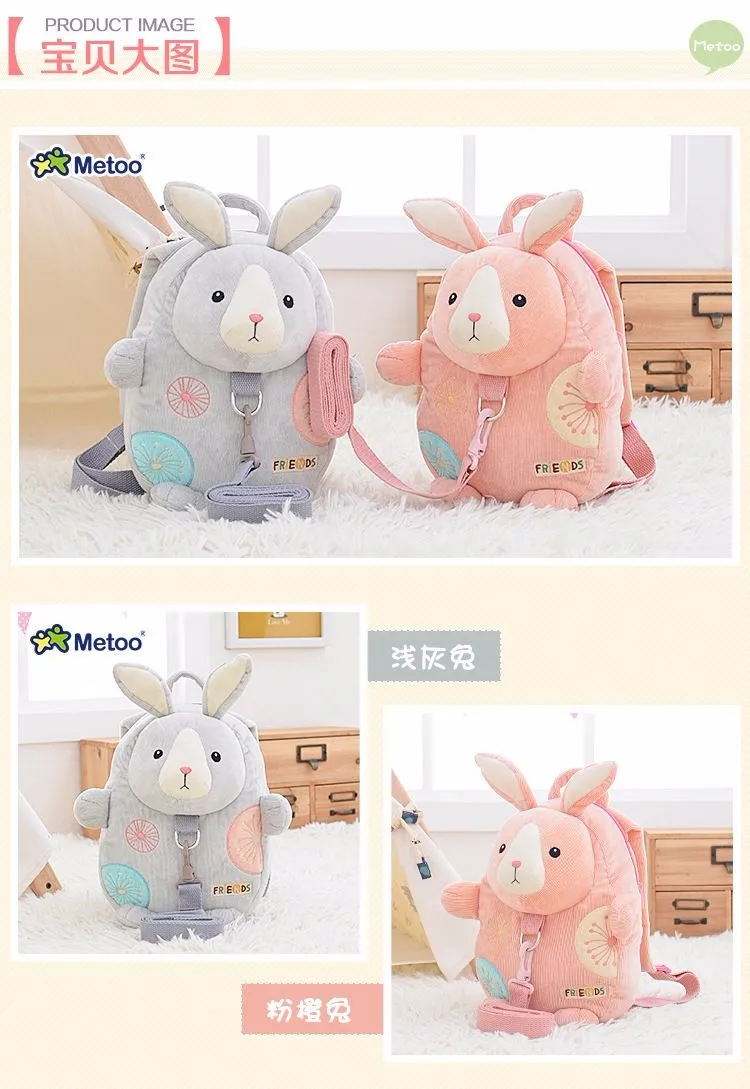 Metoo jelly beans baby children rabbit backpack with safety harness cute little backpack kindergarten school bag