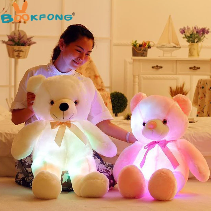 BOOKFONG Creative Light Up LED Inductive Teddy Bear Stuffed Animals Plush Toy Colorful Glowing Teddy Bear