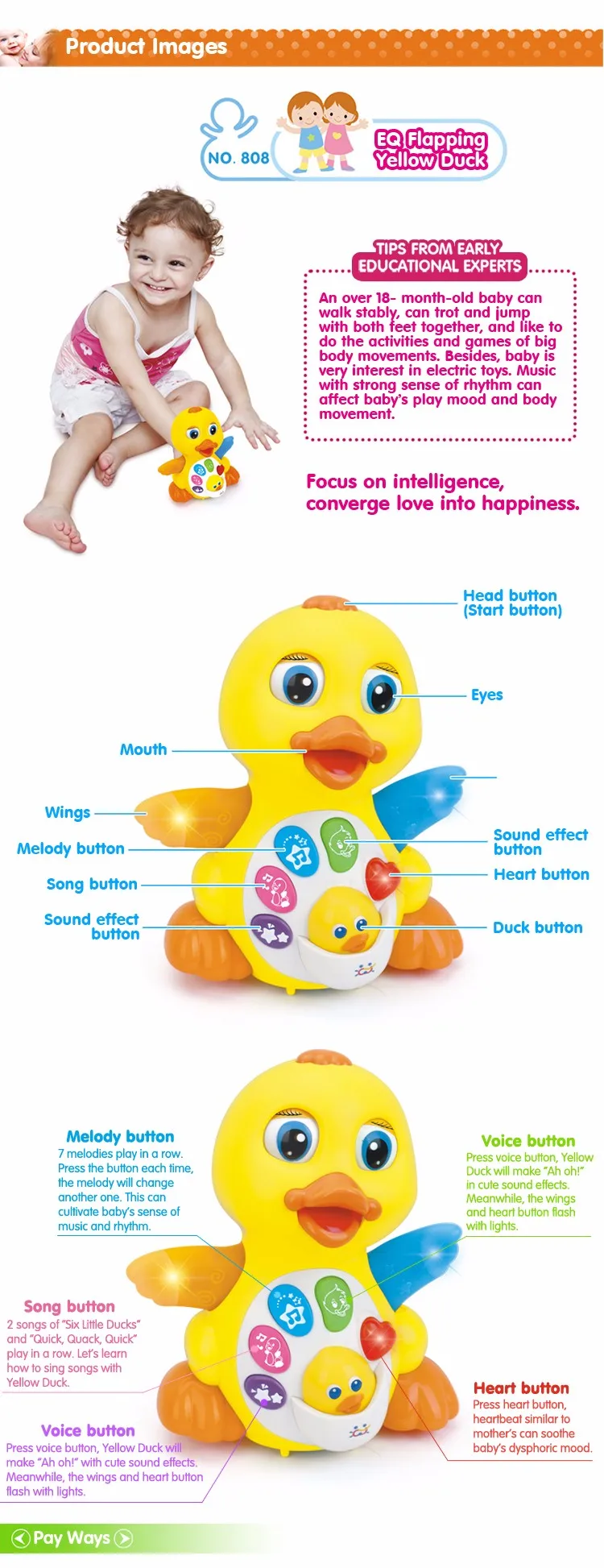 HUILE TOYS 808 Baby Toys EQ Flapping Yellow Duck Infant Brinquedos Bebe Electrical Universal Toy for Children Kids 1-3 years old