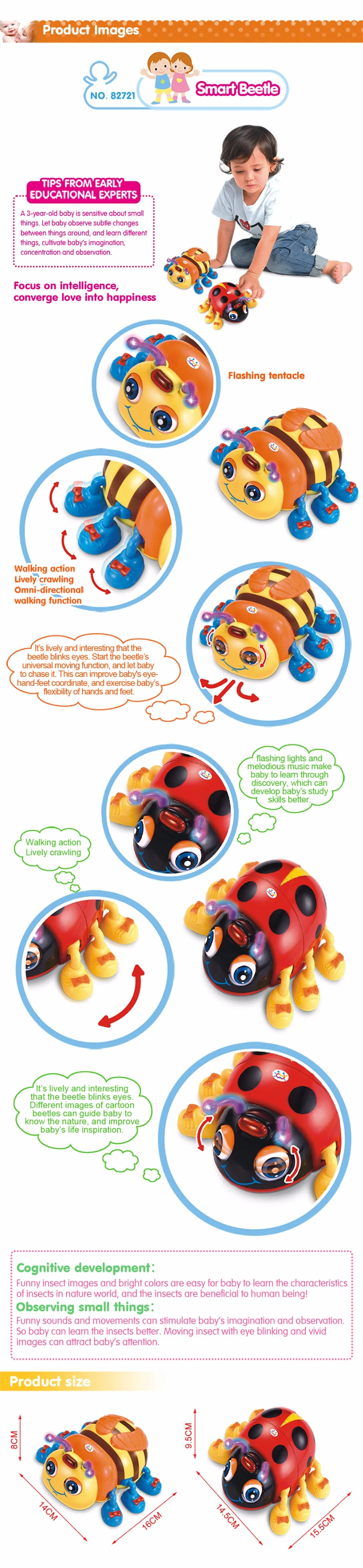 HUILE TOYS 82721 Baby Toys Infant Crawl Beetle Electric Toy Bee Ladybug with Music & Light Learning Toys for Children Xmas Gifts
