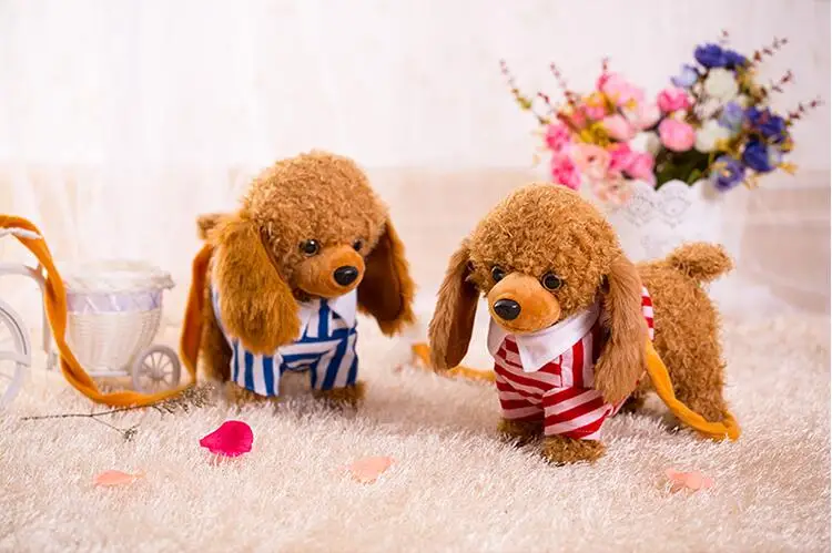 2. The dog toy has two switches, one on the battery cover, another one on pulling the rope (red button).Open two switches,the dog can sing and walk ,at the same time it will be twisted ass .Very cute and interesting!