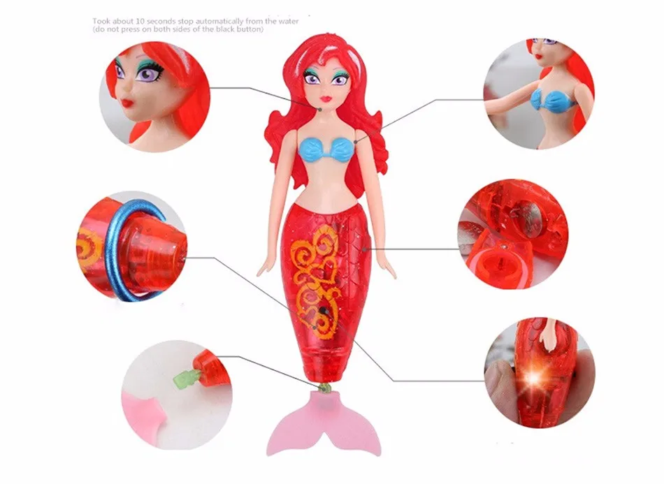 Package Include:1pc robot small mermaid fish and build in 2 pcs button battery