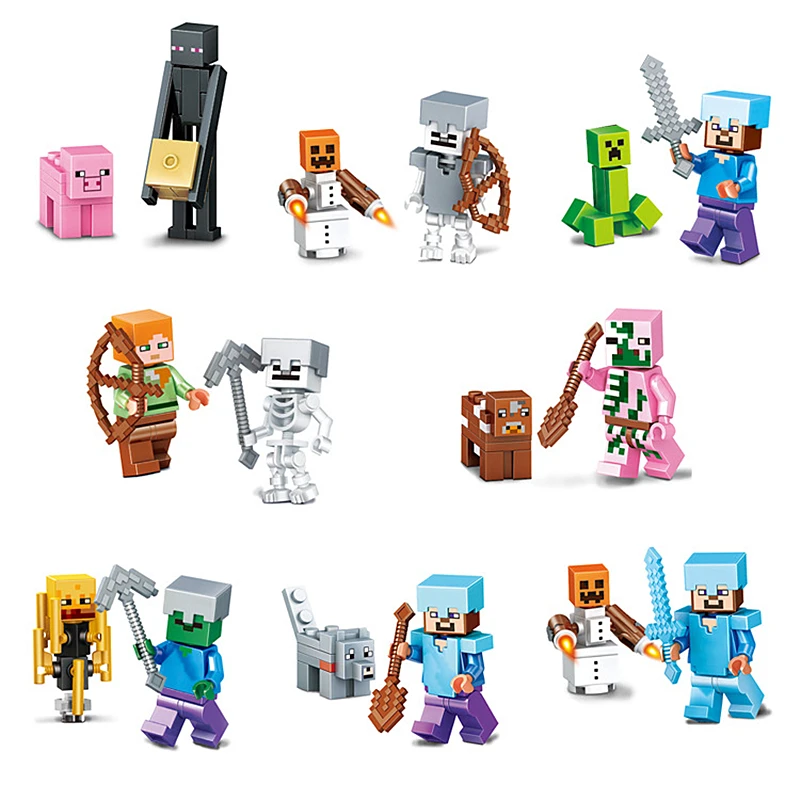 16Pcs/Lot Minecrafted Steve Alex Zombie Enderman Reuben Skeleton Weapon Action Figures Toys Compatible With LegoINGlys Blocks