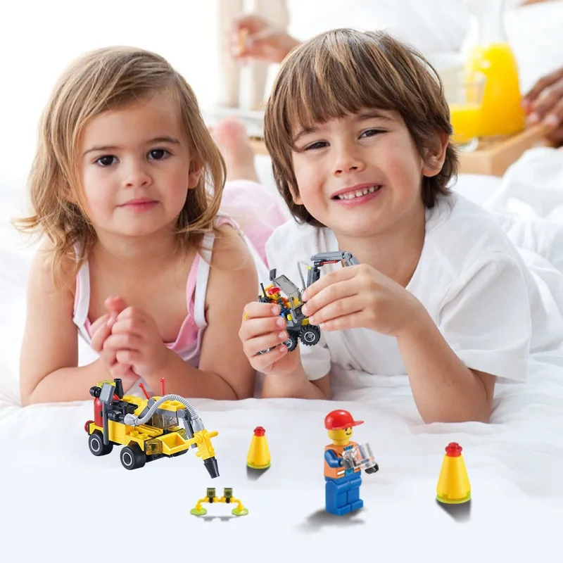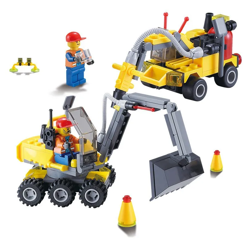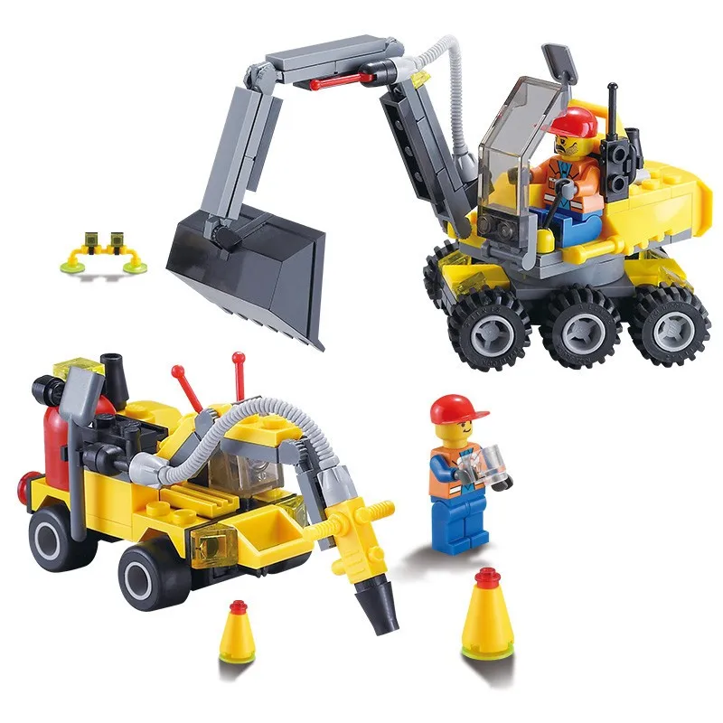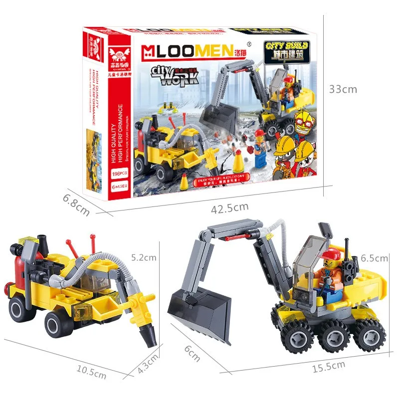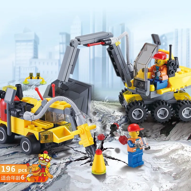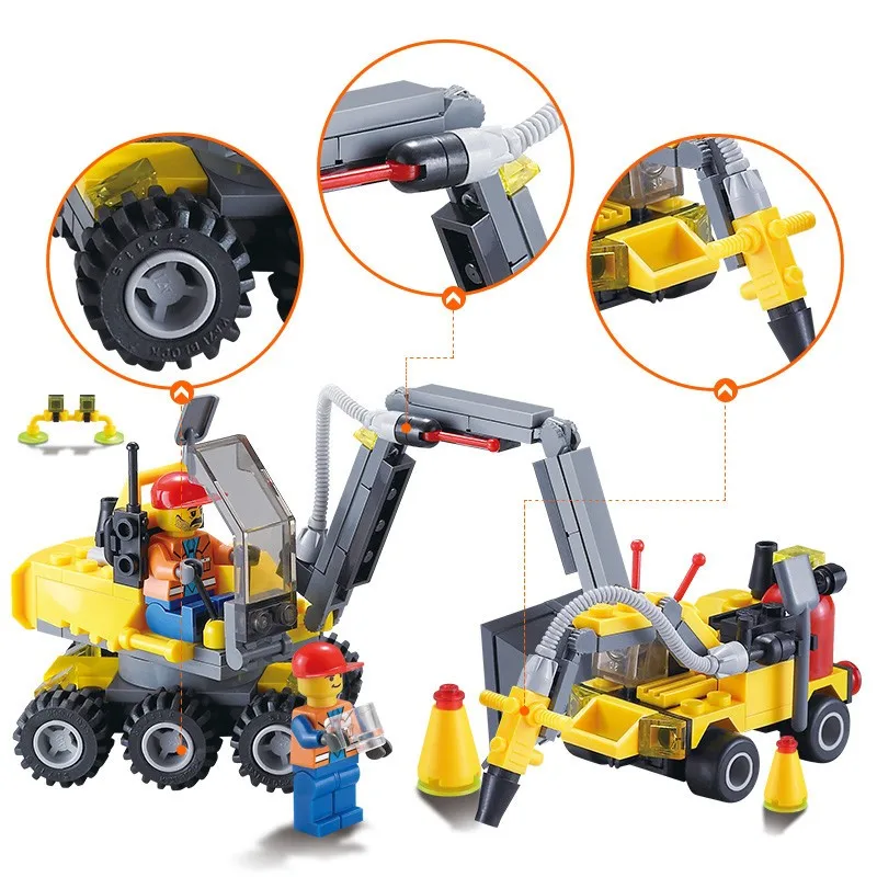 J319 Gift For Kids!! 196pcs DIY City Engineering Team Assemble Toy Excavator Small Particles Building Blocks Early Educational Brinquedos