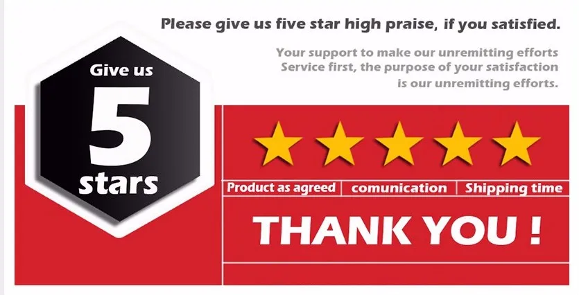 2.Please do contact us before leaving a Neutral or Negative feedback. As a serious and responsible seller, we will try our best to solve your problem. Your comment is very important in our business success. If you are satisfied with your purchase and our service, please take a minute to leave us a positive feedback with an overall Detailed Selling Rating (DSR) of 5 Star.