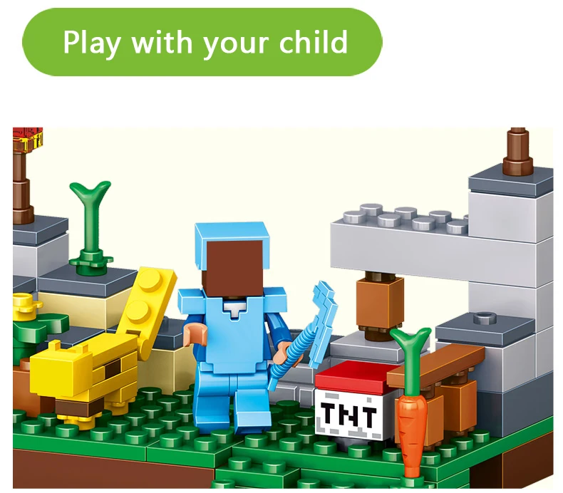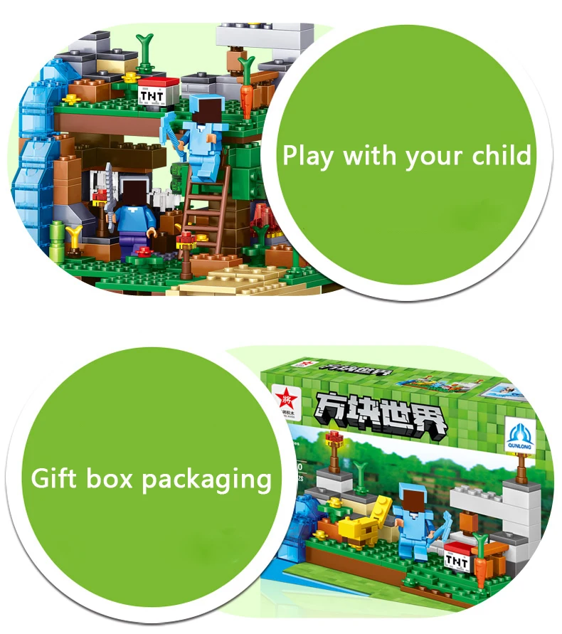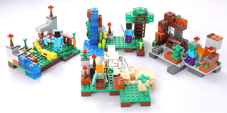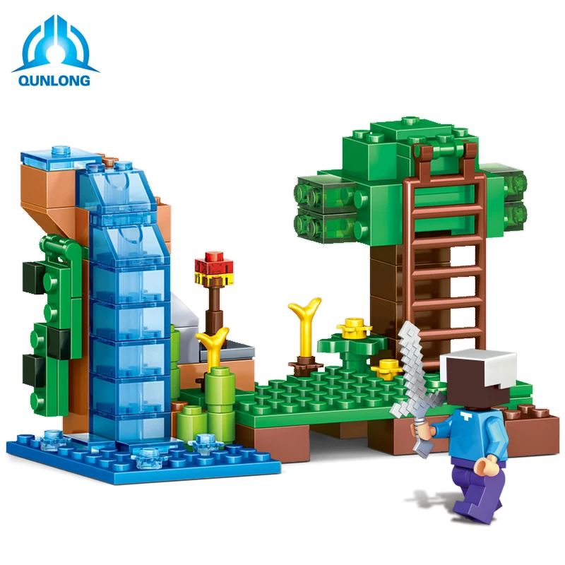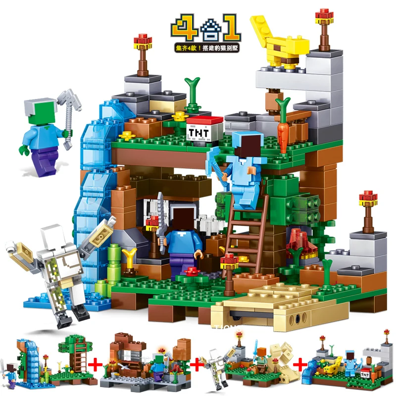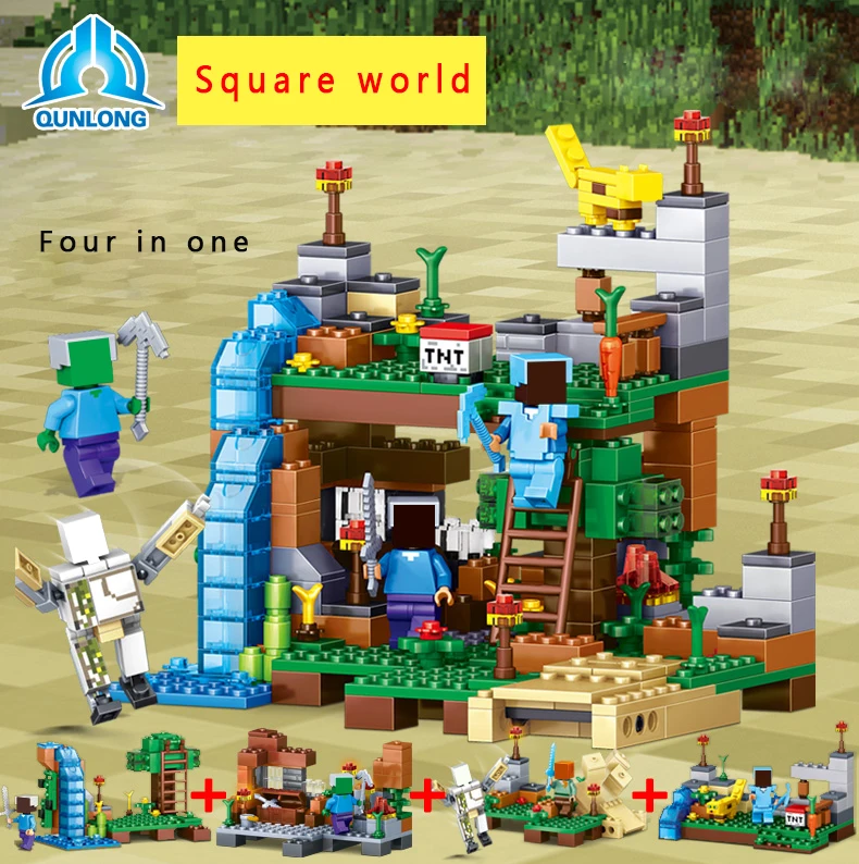 Qunlong Toy Minecrafted Figures Building Blocks 4 in 1 DIY Garden Bricks Toy Gift For Kid Compatible With Legoe Minecraft City