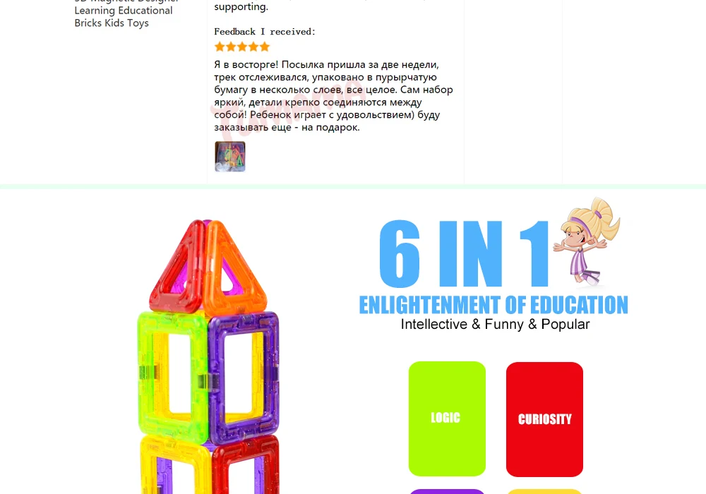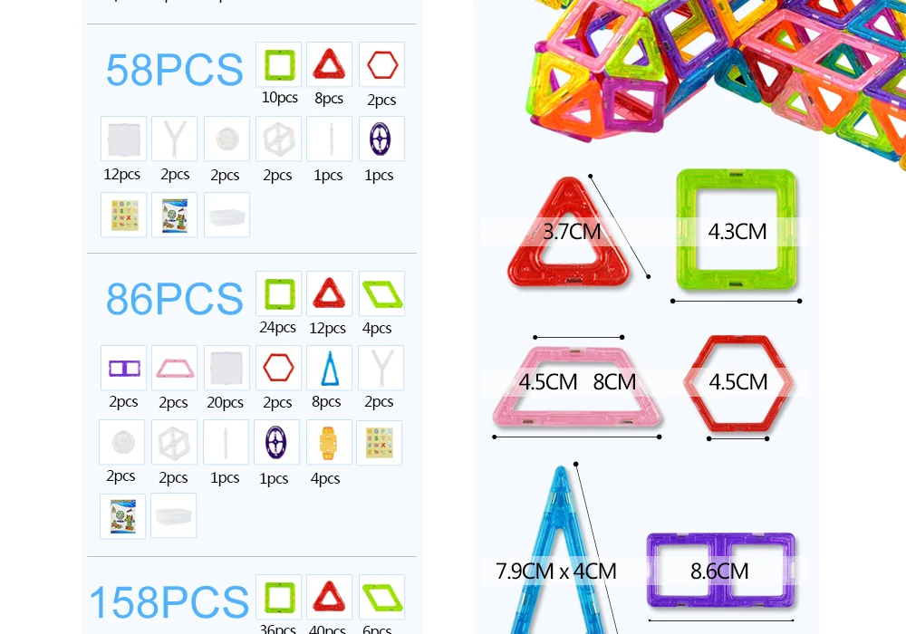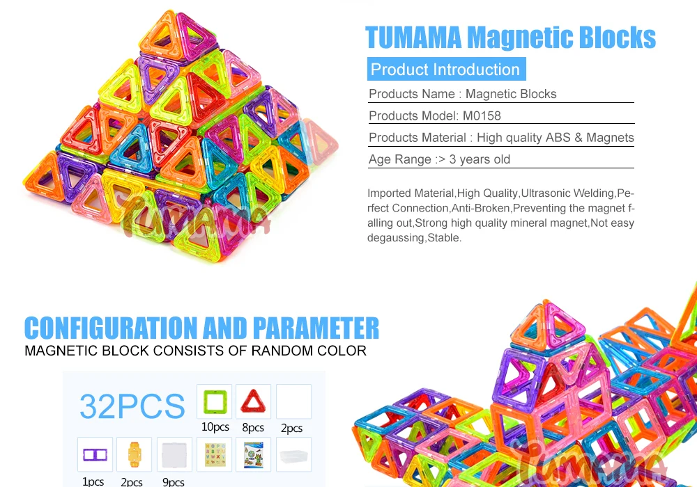 Notice: 1. Storage Box is a free Gift coming to you together, No Loss or Mess after play any more. (Please attention: Box main function is to protect the blocks during delivery, No Compensation if it broken when you receive,Thanks for your kind understanding!) 2. Each Shape Blocks Colors are sent randomly! Thanks for your kind understanding! 3. Another Solid color 158pcs blocks set is on promotion(50% OFF) now, Clients Real Feedback Show