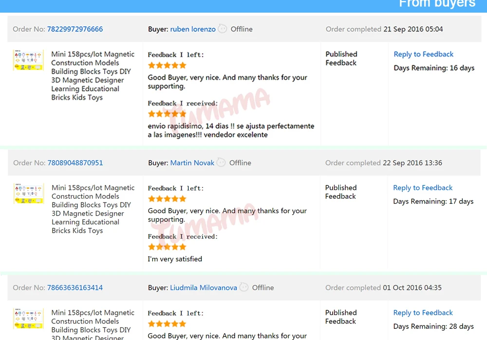 1. If you receive your order in good condition, we would be grateful if you would leave us 5 STAR POSITIVE FEEDBACK.