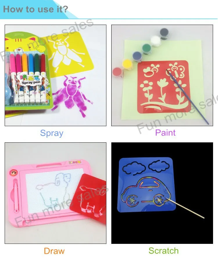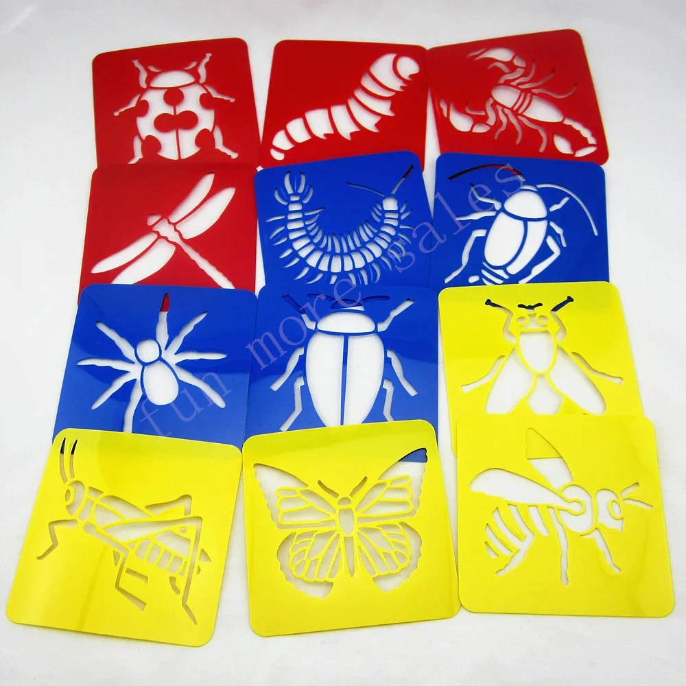 The big bug stencils are perfect for early education for children.The plastic drawing stencils for kids12 designs per lot.Assorted designs include ladybug,silkworm,scorpion,dragonfly,centipede,cockroach,spider,beetle,cicada,grassshopper,butterfly,bee. A fun arts & crafts activity for home or school.Fun more!