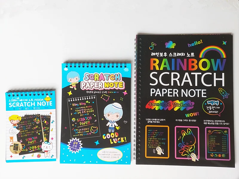 One note book includes 10 pages scratch paper, 2 pages covers, 1 wooden scratch pen.