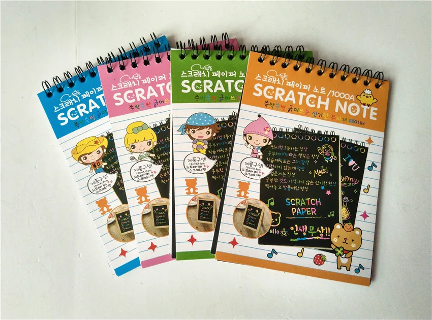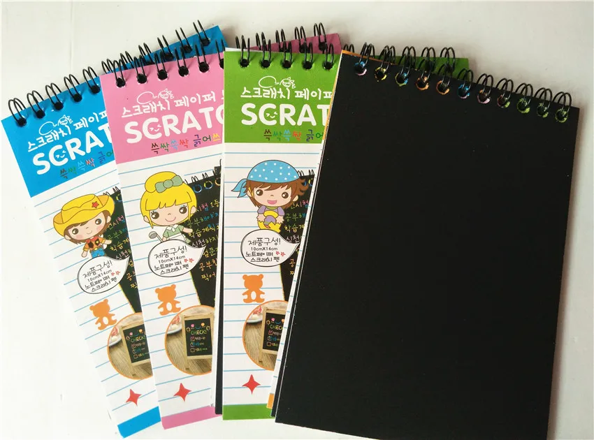 4 Sets/lot 14*10cm Magic Scratch Art Note book Scraping Drawing Toys Children Baby Doodle Educational
