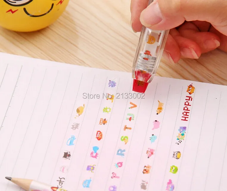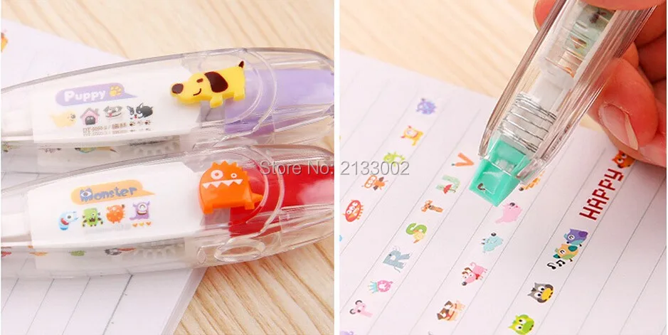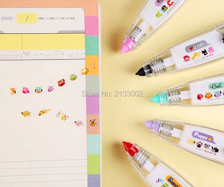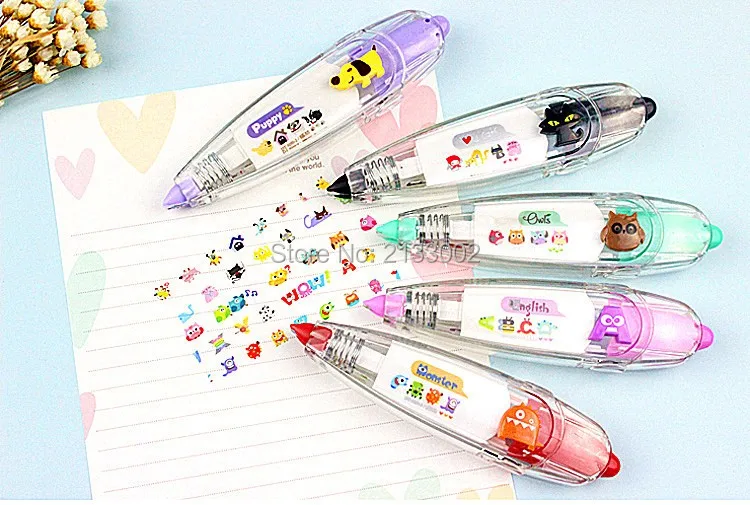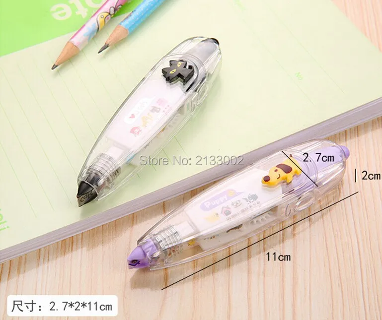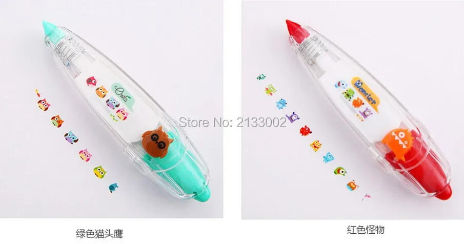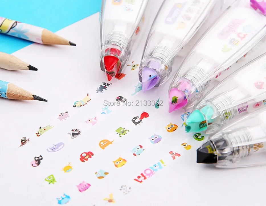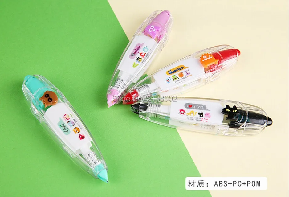 Material: ABS+PC+POM Color: Purper / Green / Yellow / Black /Red Size: 11*2.7*2 cm Package included: 1 X Correction Tape Features Pattern of fresh, multiple choice, multicolor optional. Simple and cute plastic shell, the inner core can be replaced. Drag a variety of cute little touch of random patterns, can be used to tag content as well as DIY patterns. Compact and convenient for your life to add a lot of fun~~~~ Notice: 1.Please allow 1-3mm error due to manual measurement. pls make sure you do not mind before you bid. 2.The colors may have different as the difference display,pls understand.