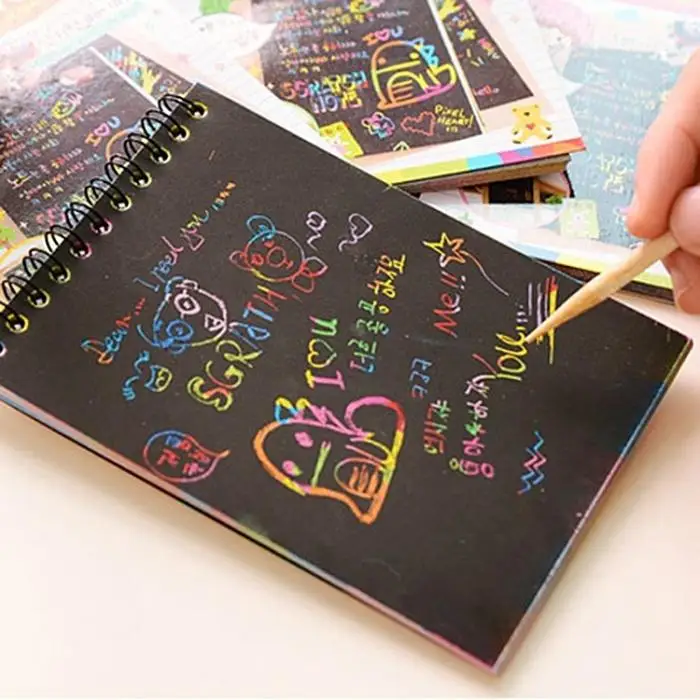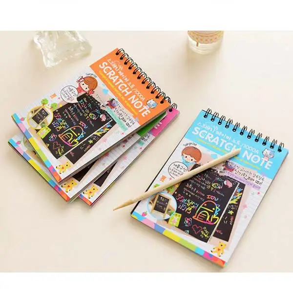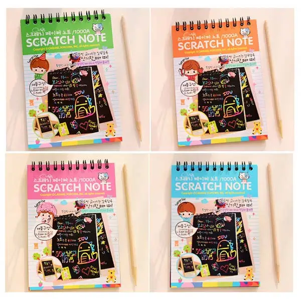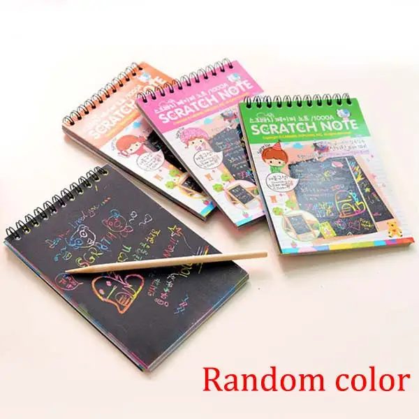 Kids Stationery Notebook Scratch Journal Wooden Stylus Scratch Paper Note Drawing Educational Toys Random Color @Z322