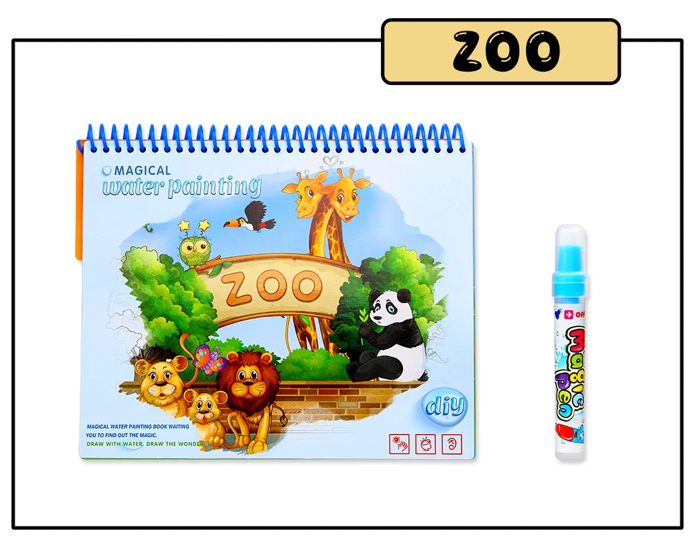 The Magic Water Drawing Book helps kids to recognize colors and animals, develop the child’s observation ability and learn more knowledge.    Once you color, the pictures are very vivid and colorful. As soon as they dry the colored areas disappear and the pages can be colored again and again.    The Water picture books can be reused many times.