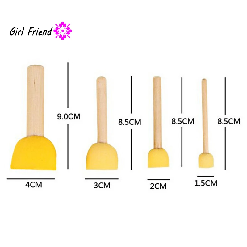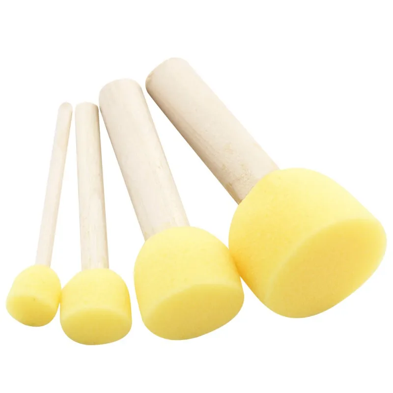 4pcs/set Paint Brush Wooden Handle Seal Sponge Brush Children’s Painting Tool Graffiti Kids DIY Doodle Drawing Toys