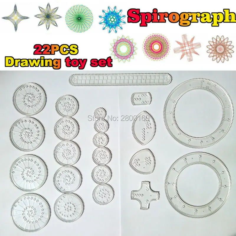 Free shipping to Russian Only,Spirograph Drawin 22PCS Accessories Creative Drawing Toys,Spiral Designs Interlocking Gears & Wheels Educational toys for kids