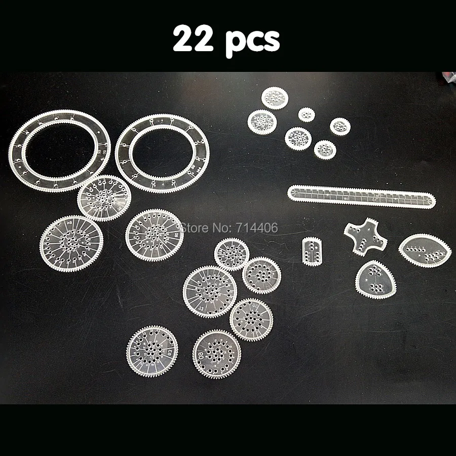 Package include: 22 Accessories : Includes 15 wheels, 2 rings, 1 rack,4 shaped wheels