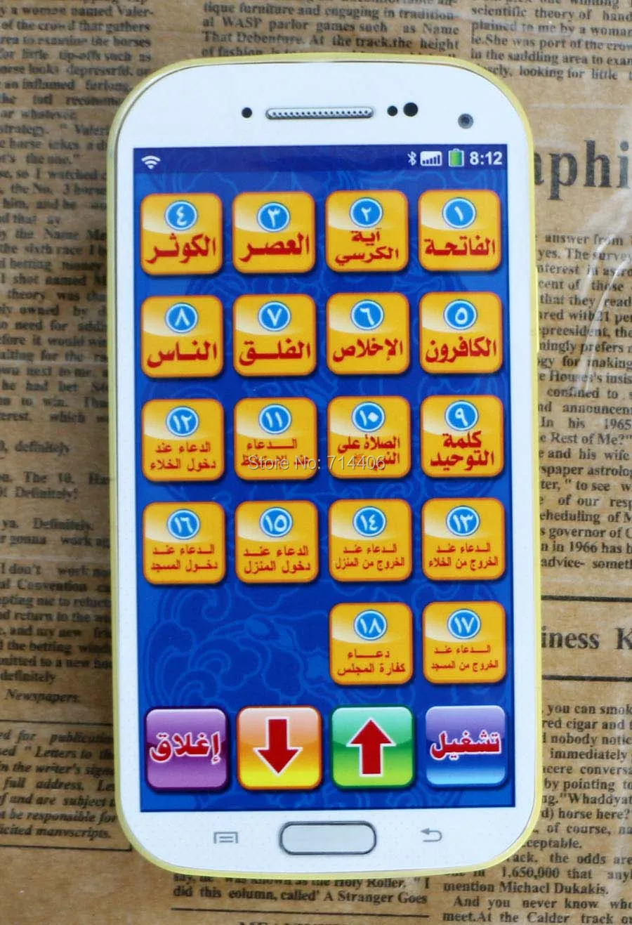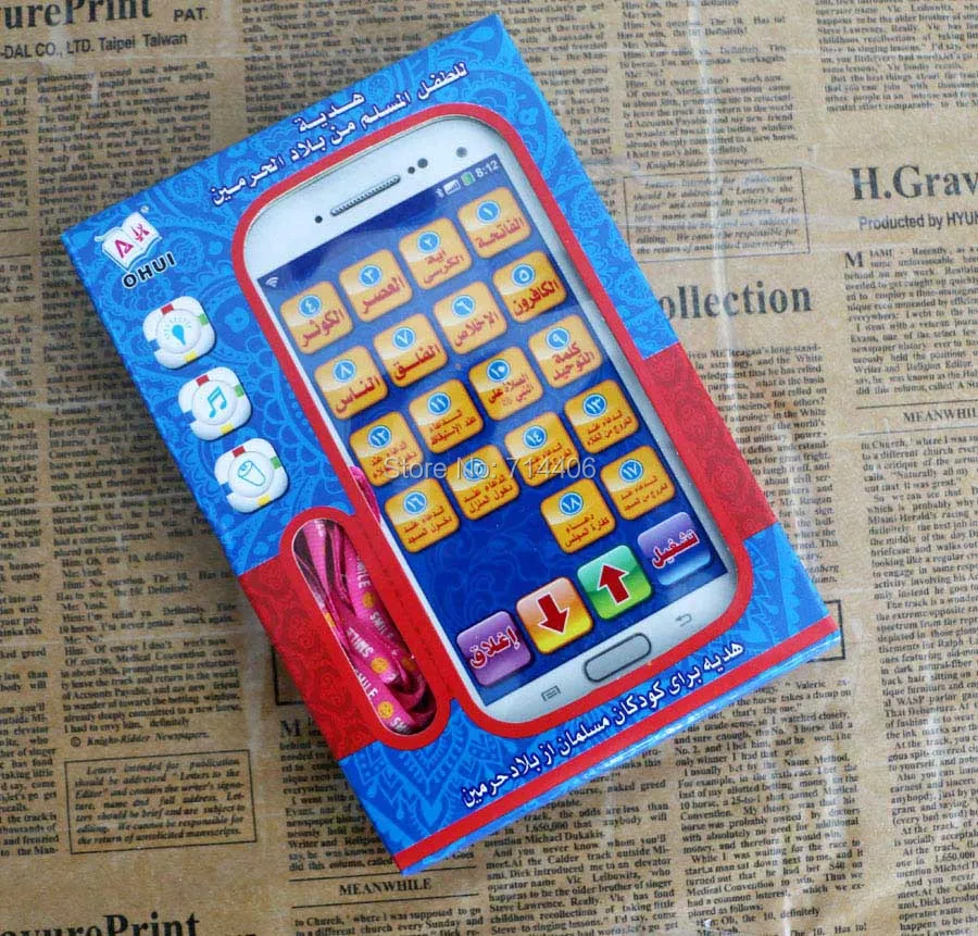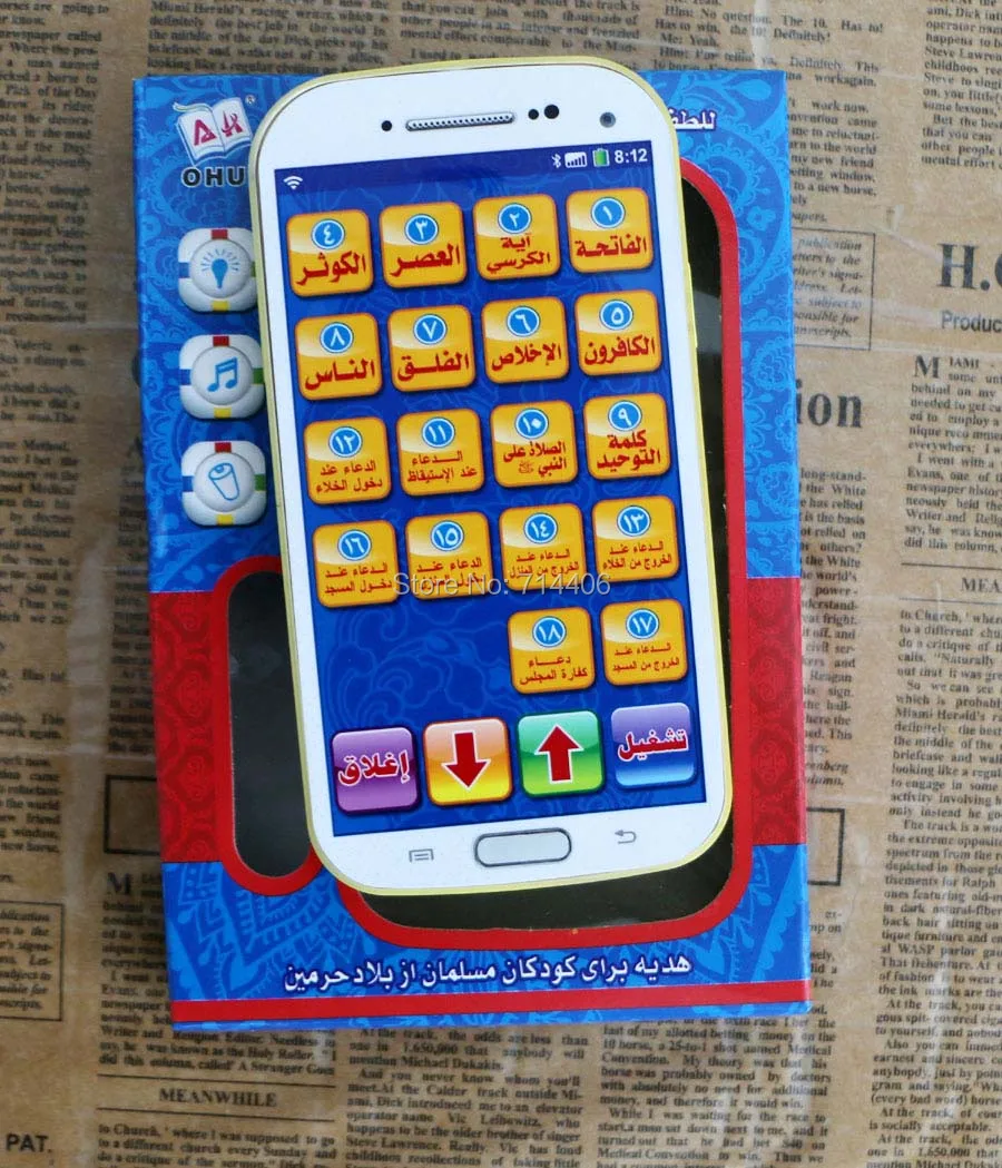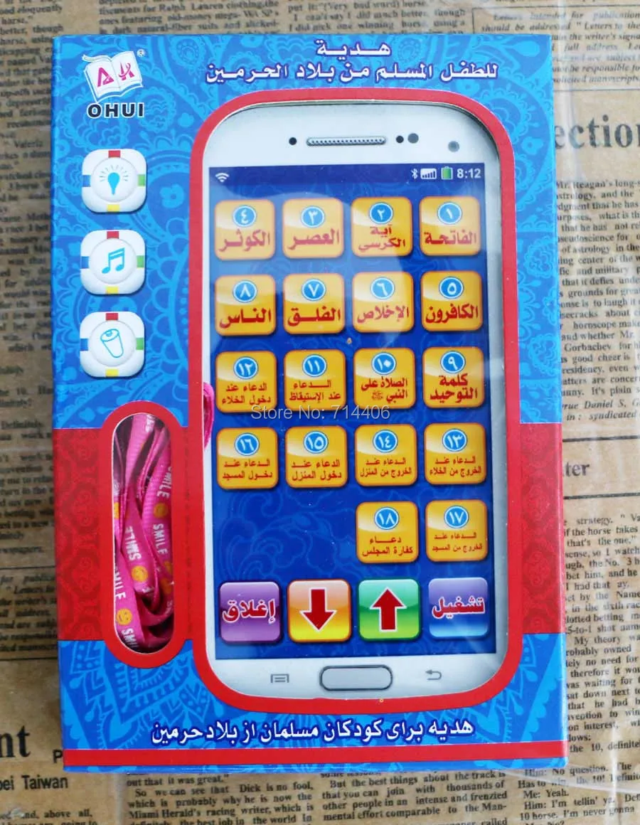 Arabic language learning toy mobile phone with 18 section of the Koran,islamic muslim kid educational toys with light