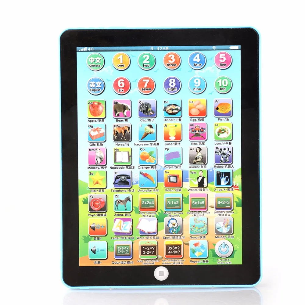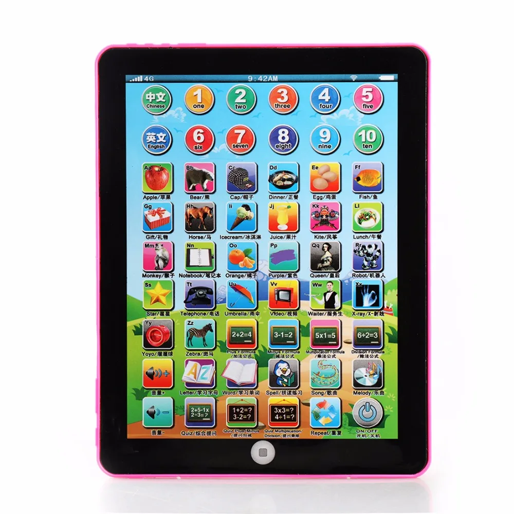 This product is not just for fun, it can aslo help your children learn English, Chinese, spelling, matching words to pictures and math. Besides, it helps your children improve their eyesight, hearing, problem-solving ability as well as overall knowledge. A great gift for any kid to enjoy as they listen to songs and play while you can rest happily knowing they’re learning and getting ahead. Anyway, it’s a great way to prepare your child for preschool. Features: 1. Multi-functional modes — 18 different fuctions 1) Multi-stage volume adjustment 2) Number: 1-10 (Chinese & English), each number stands for a song (when in the music mode); 3) Letter: alphabet voice exercises for 26 letters 4) Word: vocal exercises for 26 English words; 5) Spelling: spelling exercises for 26 English words; 6) Find letters: Press — Find the letter — Found (praise)/ Not found (“please try again”); 7) Reading digital: Press — Choose one number (1-10) — Read after the machine; 8) Find numbers: Press — Find the number — Found (praise)/ Not found (“please try again”); 9) Plus Formula: Press — Find the answer — Right (praise)/ Wrong (“please try again”); 10) Minus Formula: Press — Find the answer — Right (praise)/ Wrong (“please try again”); 11) Multiplication Mouth Summary: Basic ones, like 1×1=1; 12) Division: Basic ones, like 2/2=1; 13) Reading letters: Press “Letter” — Choose a letter — Read after the machine; 14) Find word: Press — Find the word — Found (praise)/ Not found (“please try again”); 15) Learn phonics: Press — Choose a picture — Read after the machine; 16) Scale/ Electronic organ : Press “Scale” , then choose different numbers (7 numbers altogether) to play; 17) Listen music: Press “Listen music”, then choose any picture (one song for one picture — about 30 popular songs for children; 18) Chinese/ English: 1st press — Chinese; 2nd press — English. Note: A second press is needed for each function to operate 2. Funny ways (animal calls, scale,etc) are provided for children to learn letters, words, songs, etc. 3. 8 different learning modes, more powerful. 4. Portable (only 1.8 cm thick), gentle press, easy for children to operate. 5.size: length:18cm,width: 14cm Power by 3 x AAA batteries (Not included) Color: pink and blue,Please kindly be noted we don’t offer color choice, we will send out your order at random color, your understanding will be much appreciated. Note: This is only a plastic children’s educational devise, not a real i-pad. You can only press the screen, but the screen does not light up or change