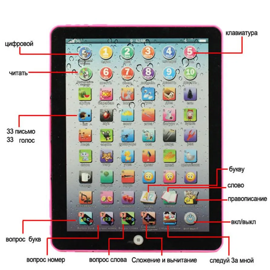 Pink Russian Computer Learning Education Machine Tablet Toy Gift For Kids