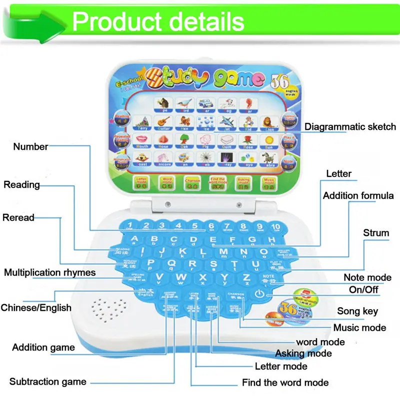 - 3.Including 5 learning modes, cover the knowledge of alphabet, word, music, math, asking.