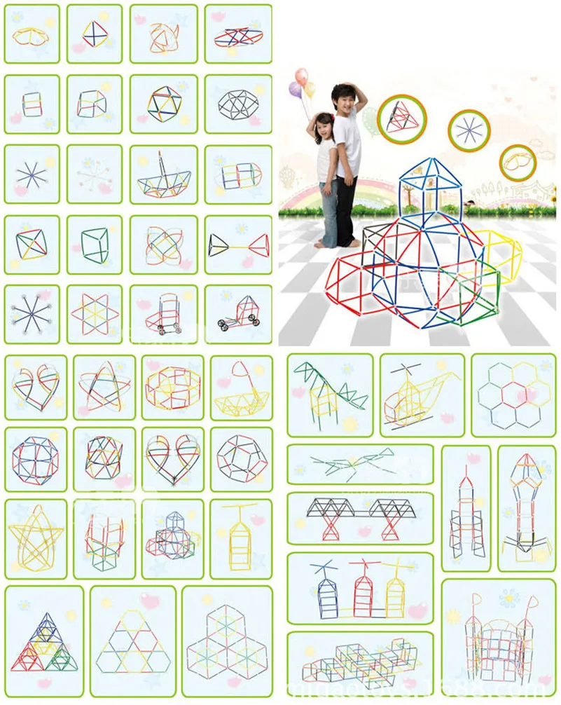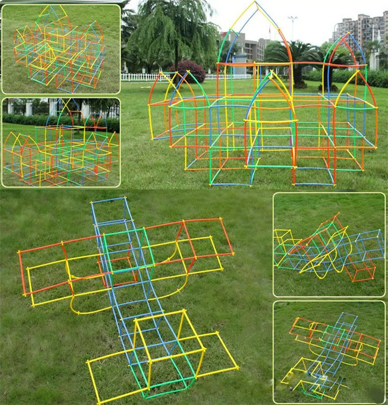 100/200pcs Assembled Building Blocks Toy Children Educational Colorful Plastic Straw Fight Inserted Blocks Christmas Gift