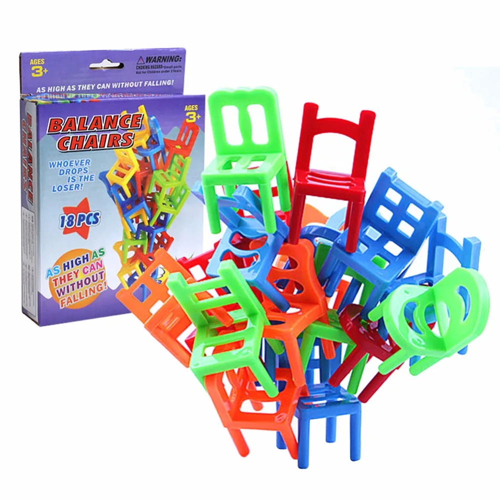 18pcs/Set Plastic Educational Toy Balance Stacking Chairs for Kids play at desktop really good family Game