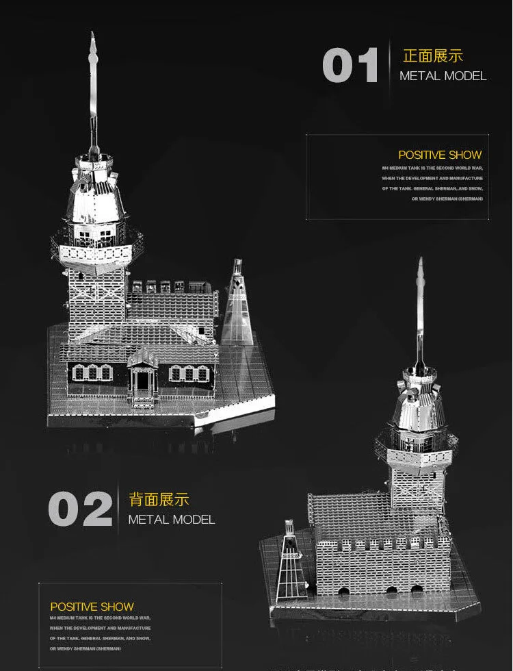 this is The high quality metal model produced by the ultra precision laser cutting. Metal model is use of superfine processing of metal sealing by laser radar, and then parts removed, like metal process as bending, folding and then plug in, you can create a world model as small palm size.