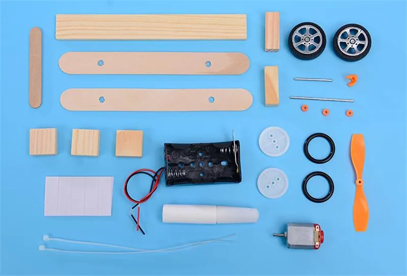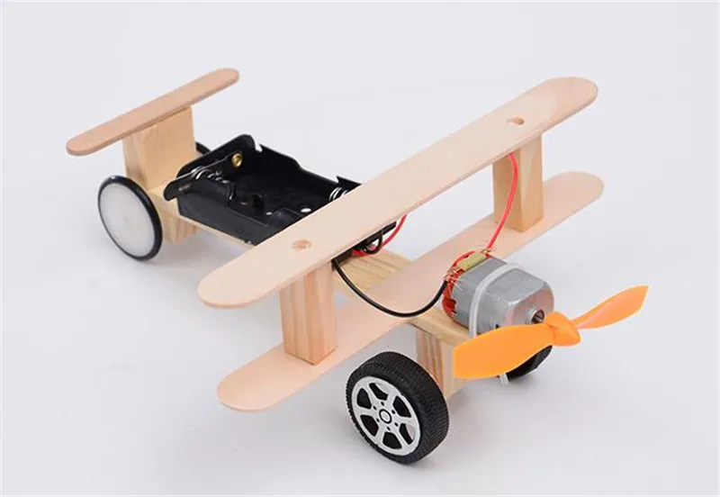 Happyxuan DIY Wind Power Glide Plane Model Kit Wood Kids Physical Science Experiments Toy Set Preschool Educational