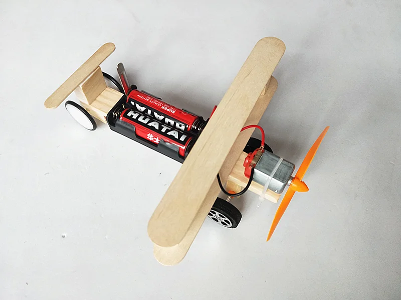 Happyxuan DIY Wind Power Glide Plane Model Kit Wood Kids Physical Science Experiments Toy Set Preschool Educational