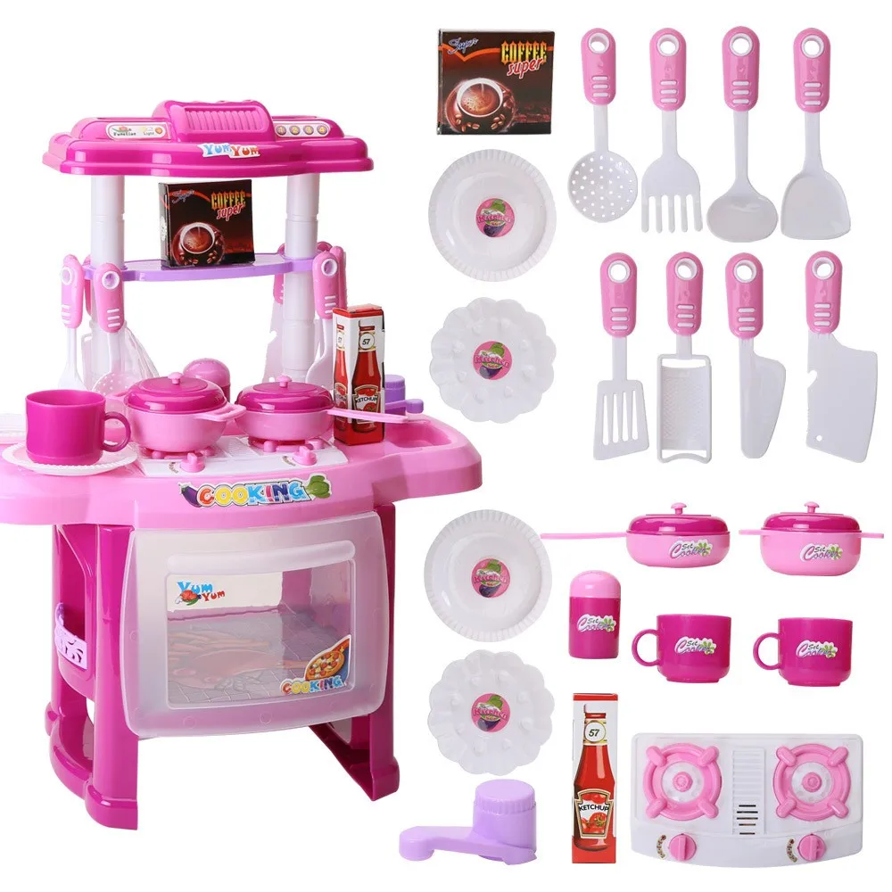 Kids Kitchen set children Kitchen Toys Large Kitchen Cooking Simulation Model Play Toy for Girl Baby