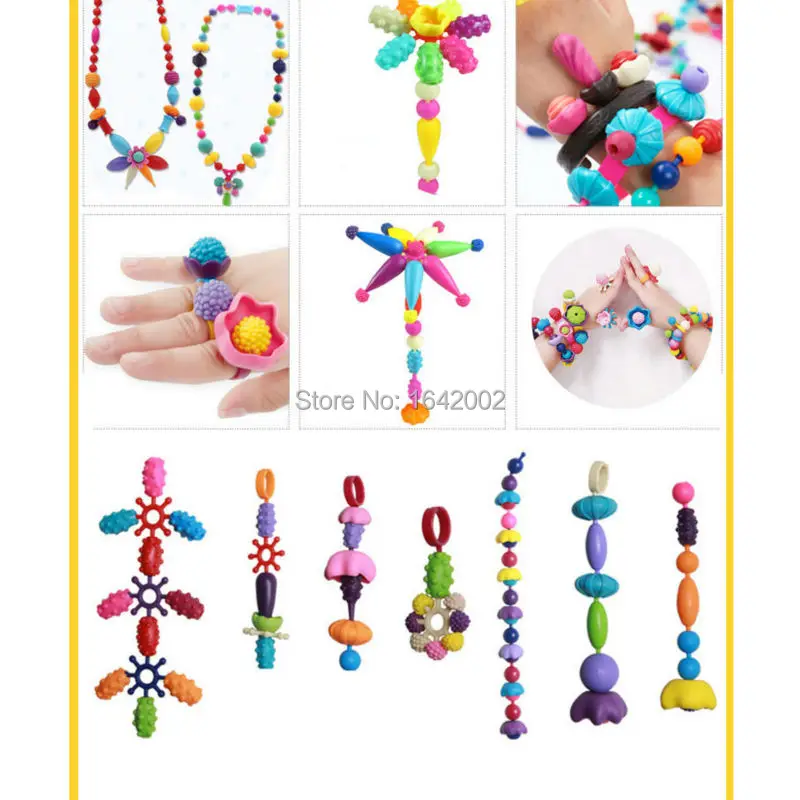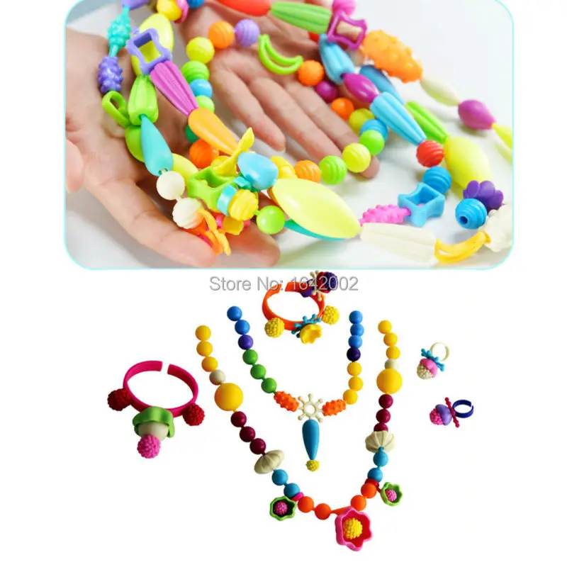 Pop-Arty Beads Snap-Together for Kid Jewelry Fashion Kit DIY Necklace and Bracelet Crafts Birthday Christmas Toy Gifts
