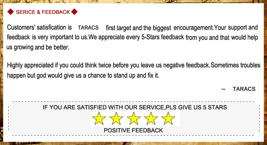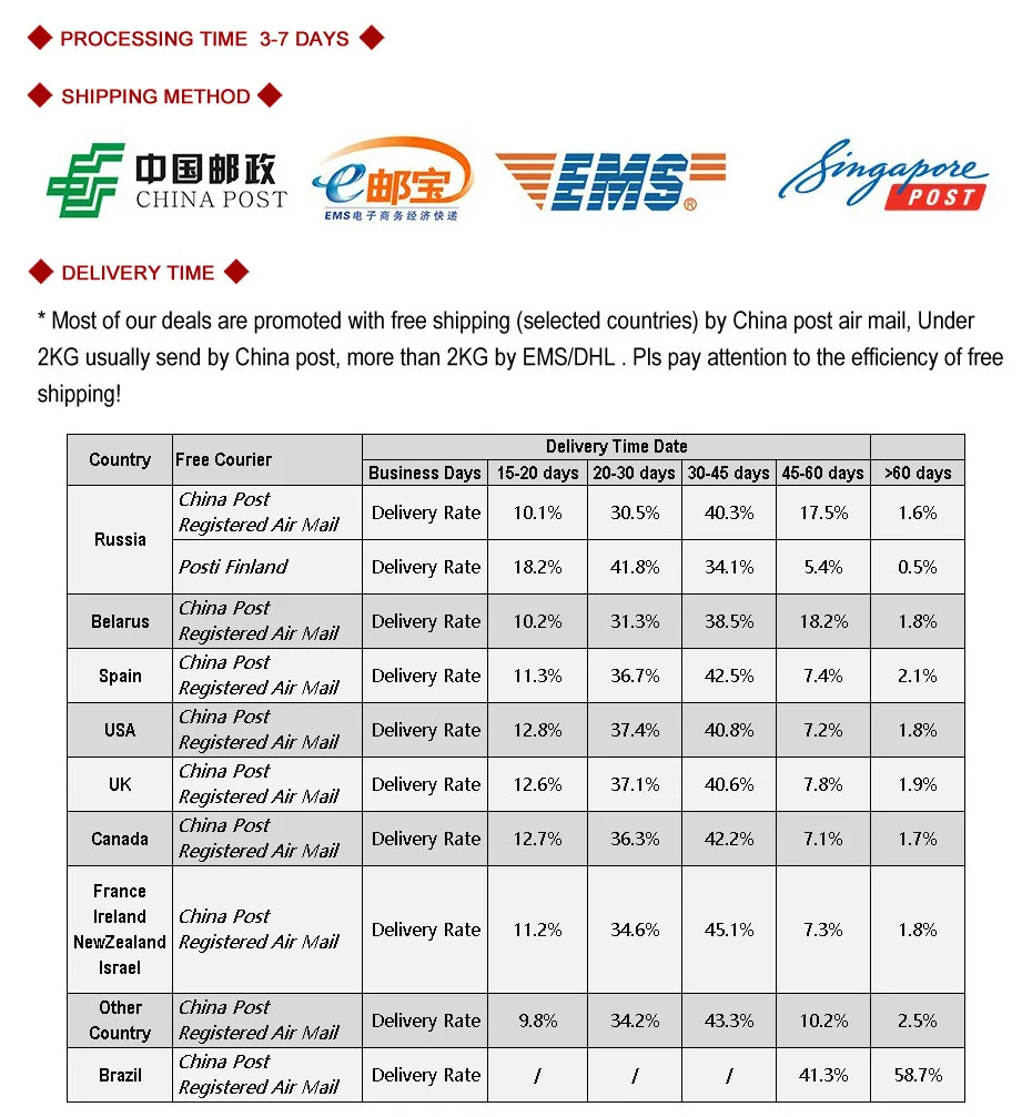 3. For Russian Customers, pls kindly USE YOUR FULL NAME (first,middle and the last name) and the correct address( Apartment No., Street, City, Region and country)when you pay and confirm the order, Otherwise, you can not receive the goods !!!