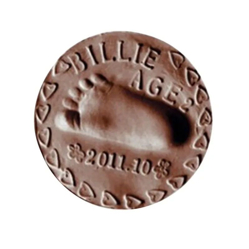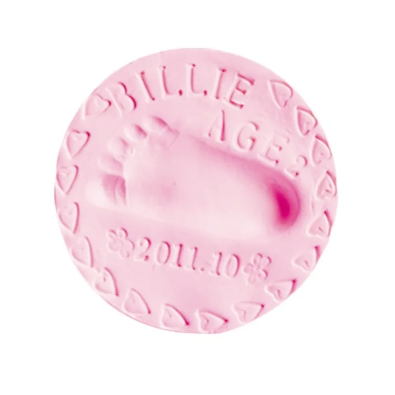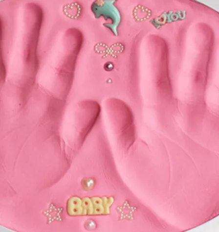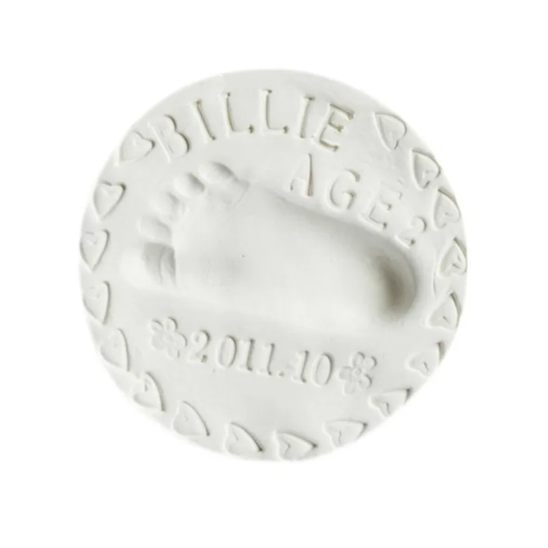 Easy to dry. Just take the amount you need for the 1st set of prints (wrap the rest in cling-film to use later), knead it a little, roll it out for a smooth surface, then press baby’s hand or foot into it. You hardly need to apply any pressure at all which makes the perfect Baby Handprint or Footprint . (no need to bake).