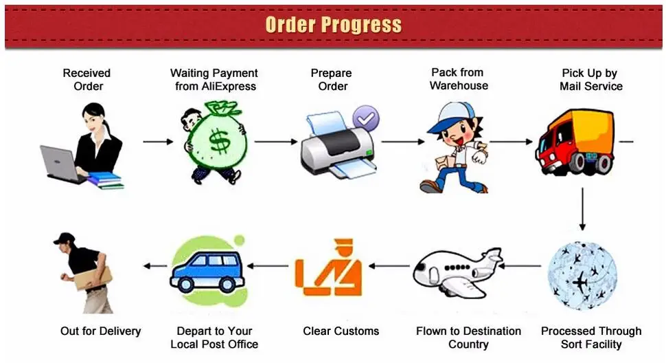 · Products is shipped by China post air mail usually. China post air mail arrive most of the countries within 10 ~ 25 working days for delivery.