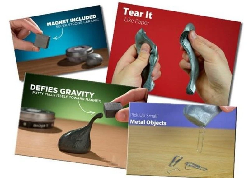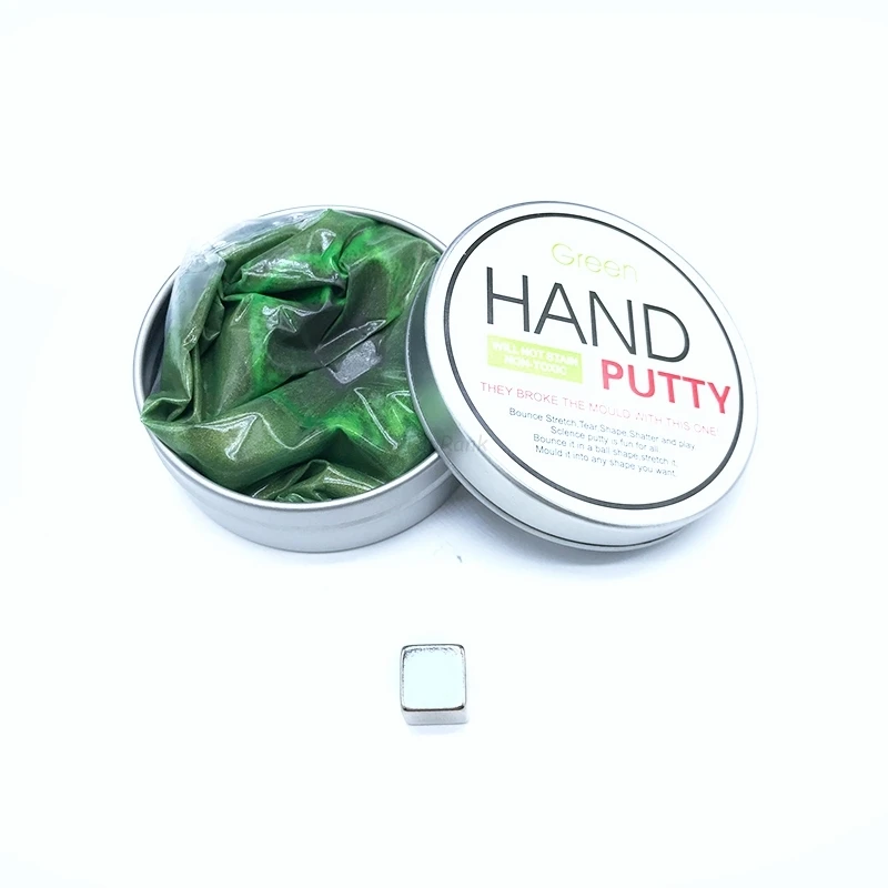 1.This magnetic putty is infused with super-tiny magnetic properties with much stronger magnetic force compare the previous version. 2.This product is an educational toy for the growing kids, who need to understand what is the magnetic field and how various materials can attract or repel each other. 3.This item is also a play tool for growing to grown ones, who needs a good time pass on their leisure time, travel time or other. 4.This is a great item for anyone who likes to play with magnets and is interested in the magical magnetic field. Putty Silly becomes a magnet itself and with this invisible force it can lift up tacks and paperclips. 5.When you place the magnet cube towards it, it reacts in seconds, pulling putty with them. It is exactly as fun as shown in the pictures, the actual ones we took by our own. Specifications: Material: Silicone Grease Color: gold, black, purple, silver, green, blue Net weight: 58g(include the box about 70g) B rand::HAND PUTTY The reason for the computer display.All product outward appearance, the color take the material object as, the picture only supply the reference. Package included: 1x Magnetic Putty 1x Magnetic Cube 1x Box Tips:The use of magnetic mud is related to the temperature, if it is too hard. Can be put in hot water at 40 degrees centigrade, then use it.